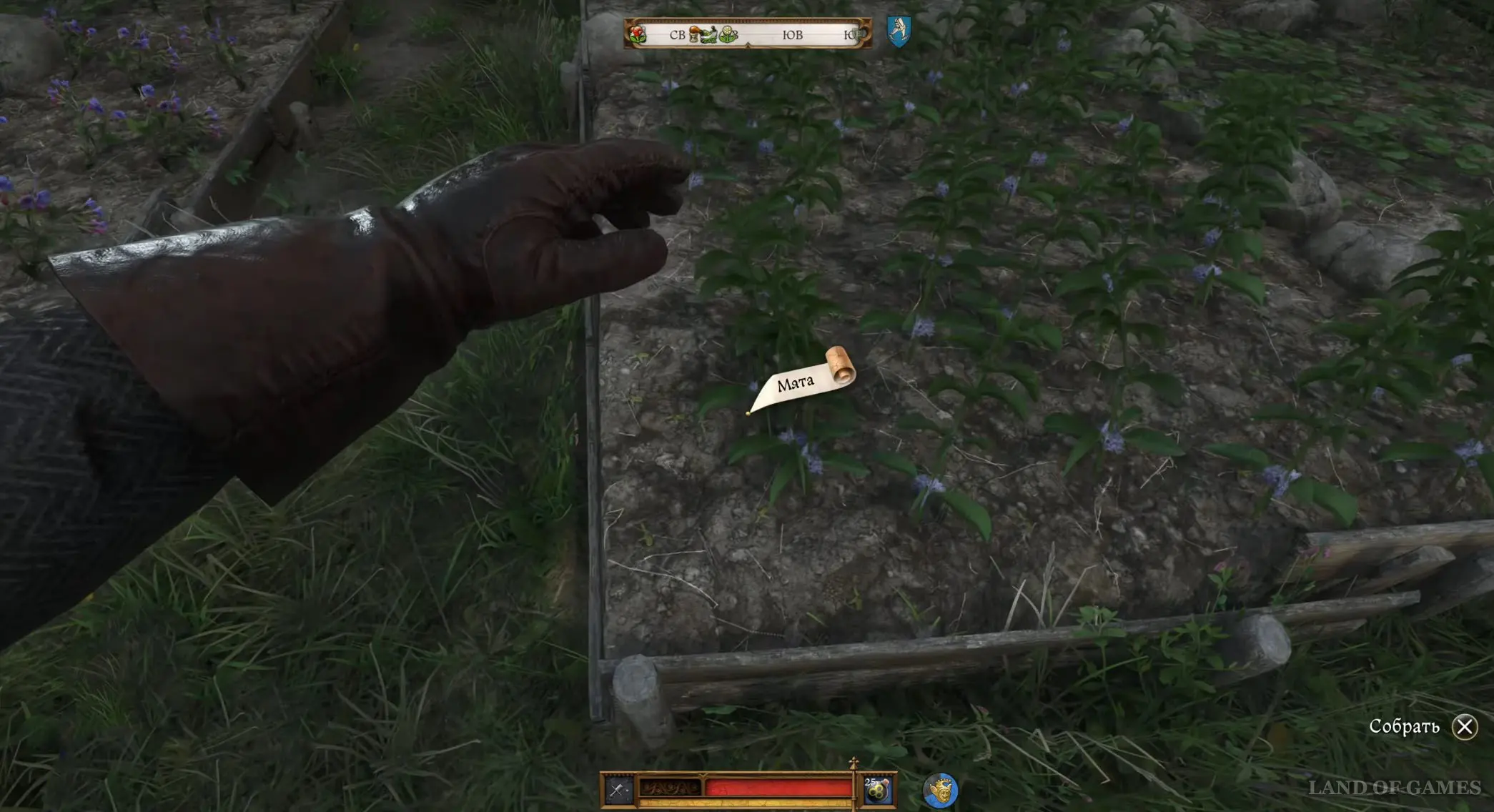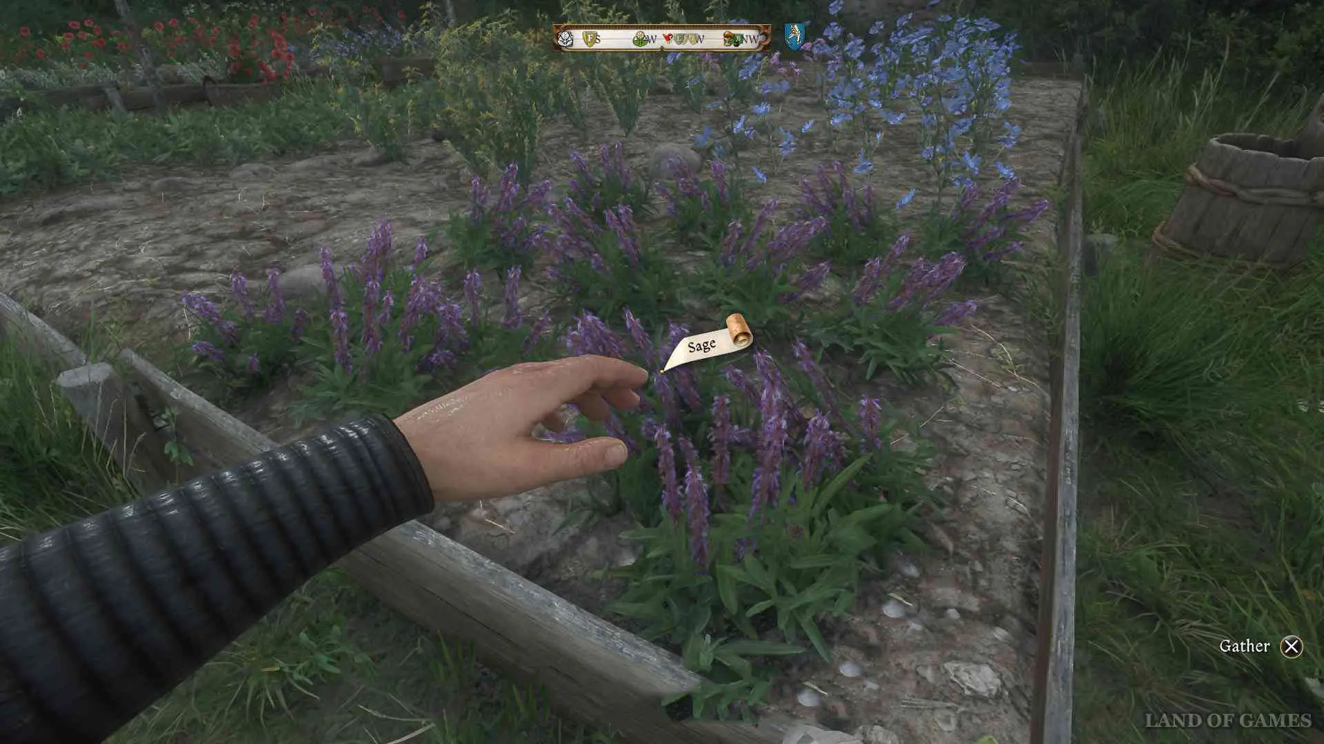 Плюс, шалфей растет в том же саду, что и мята – вам необходимо просто осмотреть другие грядки. На скриншотах ниже показано точное расположение нужного вам цветка (имеет фиолетовый продолговатый кончик).