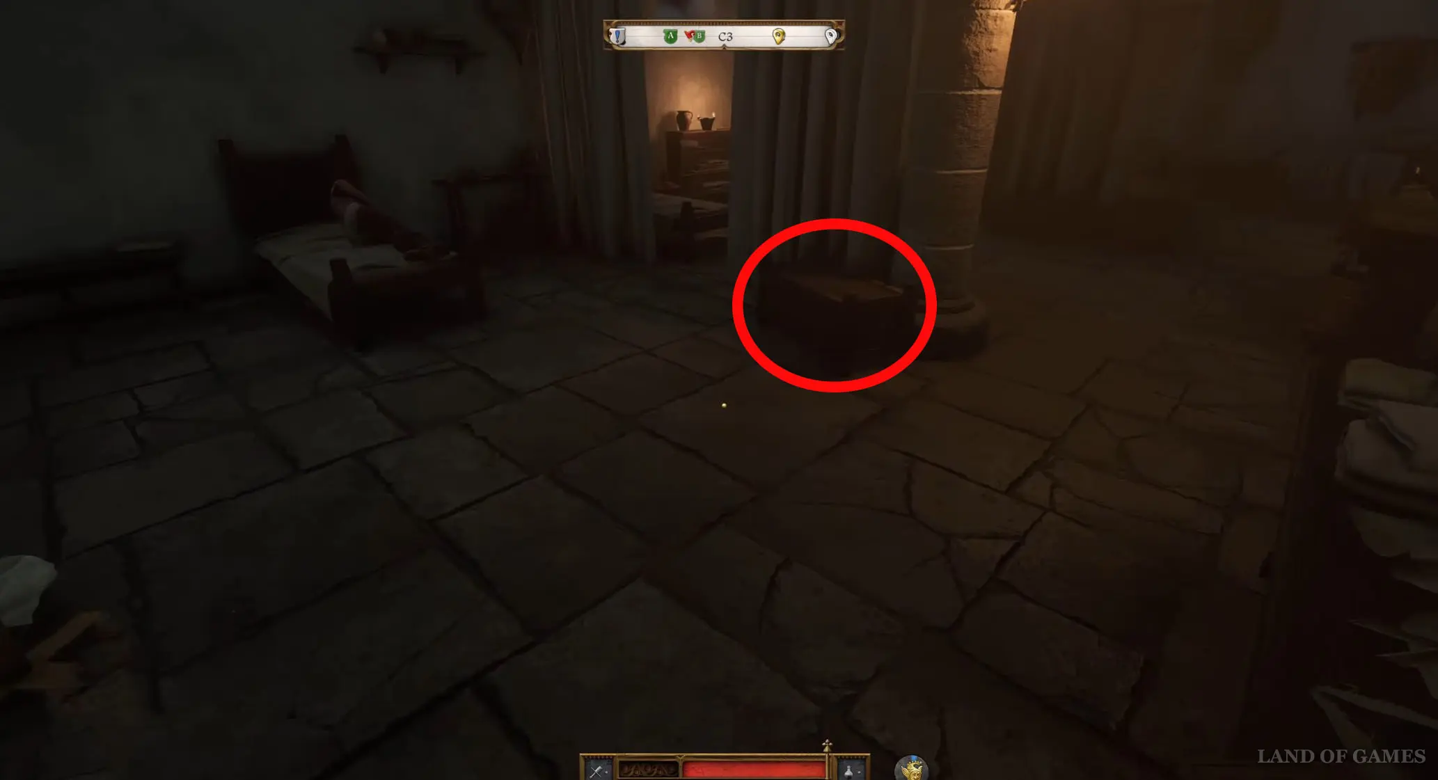 Отметим, что с большой вероятностью вы сможете отыскать его прямо в лазарете, так как он в больших количествах лежит в одном из незапертых деревянных сундуков, – стоит рядом с каменной колонной (смотрите скриншоты ниже).
