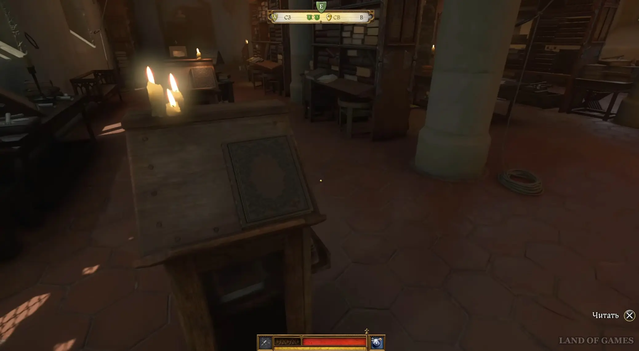 Теперь отправляйтесь в библиотеку, расположенную в южной части монастыря. Пройти сюда можно через дверь на востоке. Вход находится возле двух лестниц. Оказавшись внутри нужного помещения, пройдите к самой юго-западной книжной подставке и прочтите лежащую на ней книгу. Вам нужно пролистать все страницы до конца.