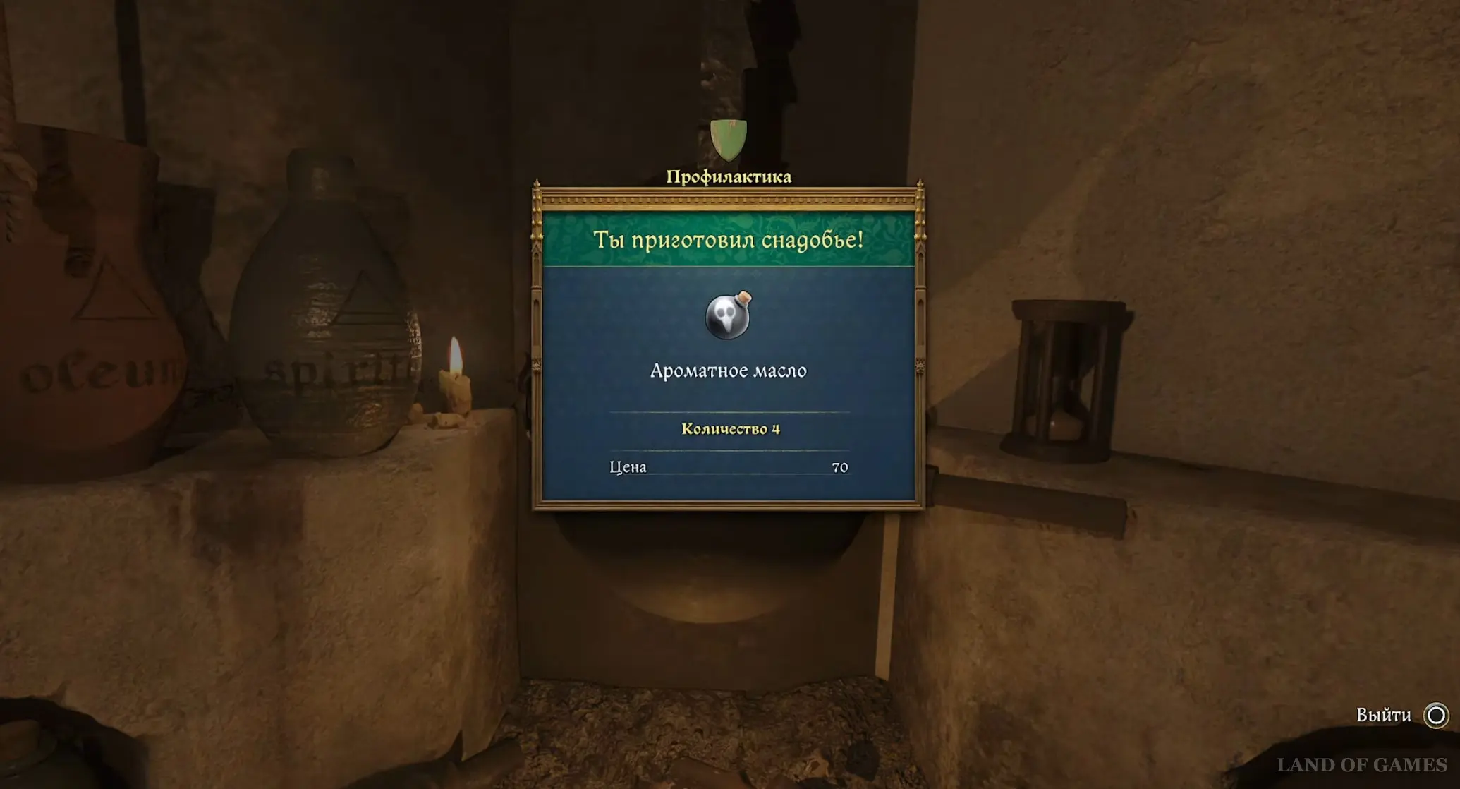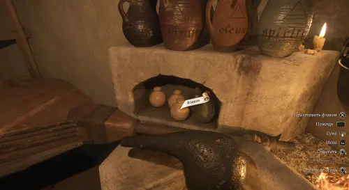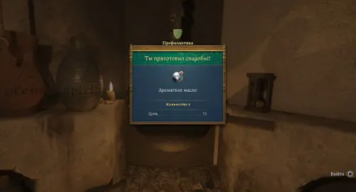 - В качестве основы возьмите масло, стоящее на верхней левой полке (второй кувшин справа).