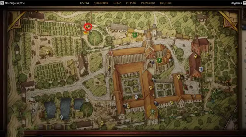 - Последнее желание – для его начала следует поболтать с монахом Афанасием, который работает на этаже выше библиотеки, или с Константином в саду.