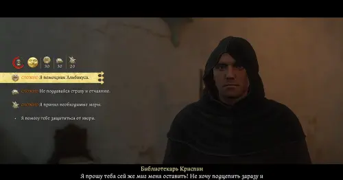 - Предвидение зла – для его начала требуется поговорить с библиотекарем Криспином во время предыдущего квеста и выбрать ответ, не требующий проверки характеристик.