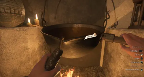 - Теперь возьмите 3 горсти ромашки и бросьте их в котел с маслом. Далее опустите котелок к огню, переверните песочные часы и начните использовать меха, чтобы масло закипело. Когда песок в часах закончится, снова переверните их – в общей сложности так нужно сделать 3 раза. Затем снова поднимите котел.
