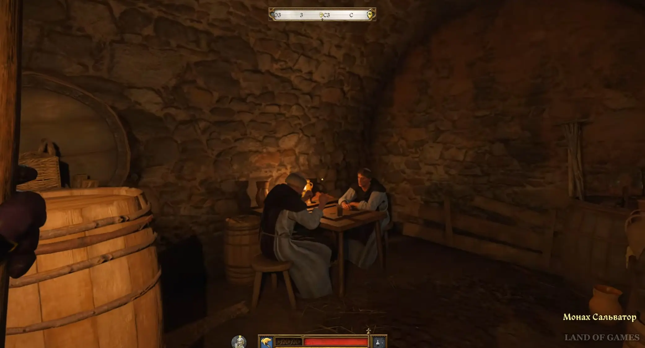 Кстати, в подвале под кухней можно обнаружить двух монахов (Сальватора и Григория), которые будут играть в кости. Вы можете сыграть с ними, и если вы победите их, то «получите» уникальную игральную кость. Точнее они расскажут вам загадку, позволяющую отыскать этот особый кубик.