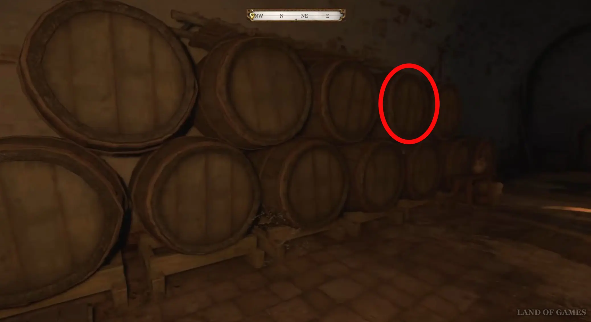 После победы в игре выйдите из помещения и тут же пройдите через проход впереди, спустившись по ступенькам вниз. Далее сверните влево, пройдя черед две двери и спуститесь еще ниже по небольшой лесенке. В итоге вы попадете в подвал, где в больших бочках хранится вино. Пройдите в левую честь комнаты и подойдите к ряду бочек. Вам нужно будет взаимодействовать с четвертой бочкой на верхней полке (если считать слева направо). Внутри нее вы и найдете кубик. Можете потом вернуться к монахам и снова сыграть с ними.