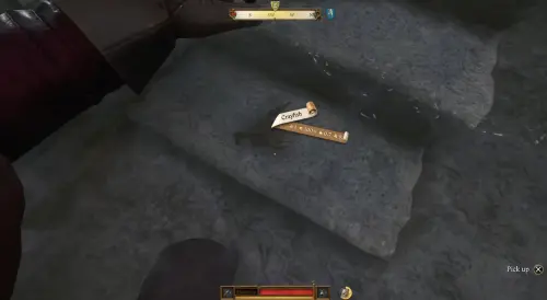 В результате вы будете постепенно терять очки жизни из-за дебаффа. Тут же бегите в подвал, чтобы оторваться от стражников, а потом идите к прудам, о которых мы рассказали выше, и начните ловить раков, подбирая их спереди. Один из них наверняка ущипнет вас, и вы умрете, что приведет к появлению уникального экрана завершения игры и получению трофея. Потом можете просто загрузить последнее сохранение и продолжить прохождение миссии, не вступая в драку со стражниками.