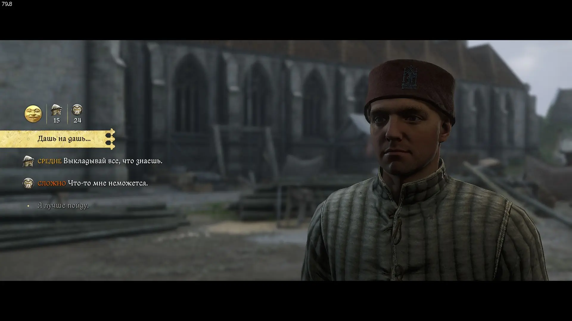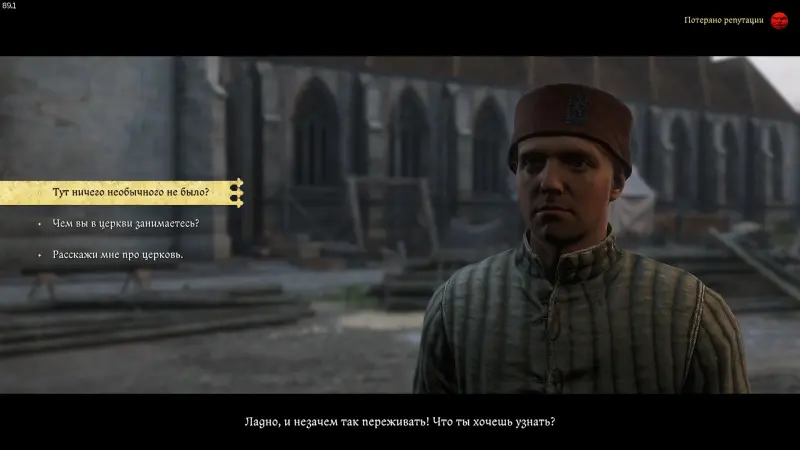 Первым делом направляемся к рабочим, что находятся в северной части монастыря — возле церкви. Попытавшись поговорить с одним из них, нас отправят к Лойзу.