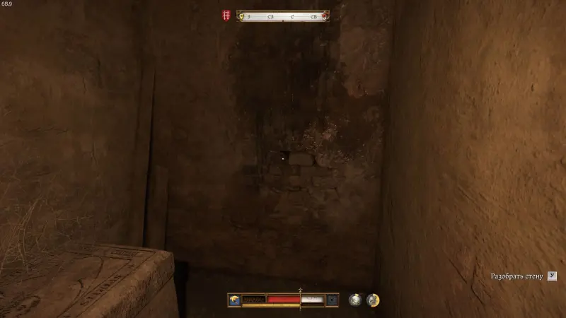 В этот момент услышим, как кто-то запер дверь, через которую мы сюда зашли. Выяснив необходимую информацию, пора покидать крипту. Чтобы открыть дверь, потребуется пройти очень сложный взлом. Но есть и другой выход с этого могильника. Слева от алтаря есть полуразрушенная стена, которую мы можем доломать.