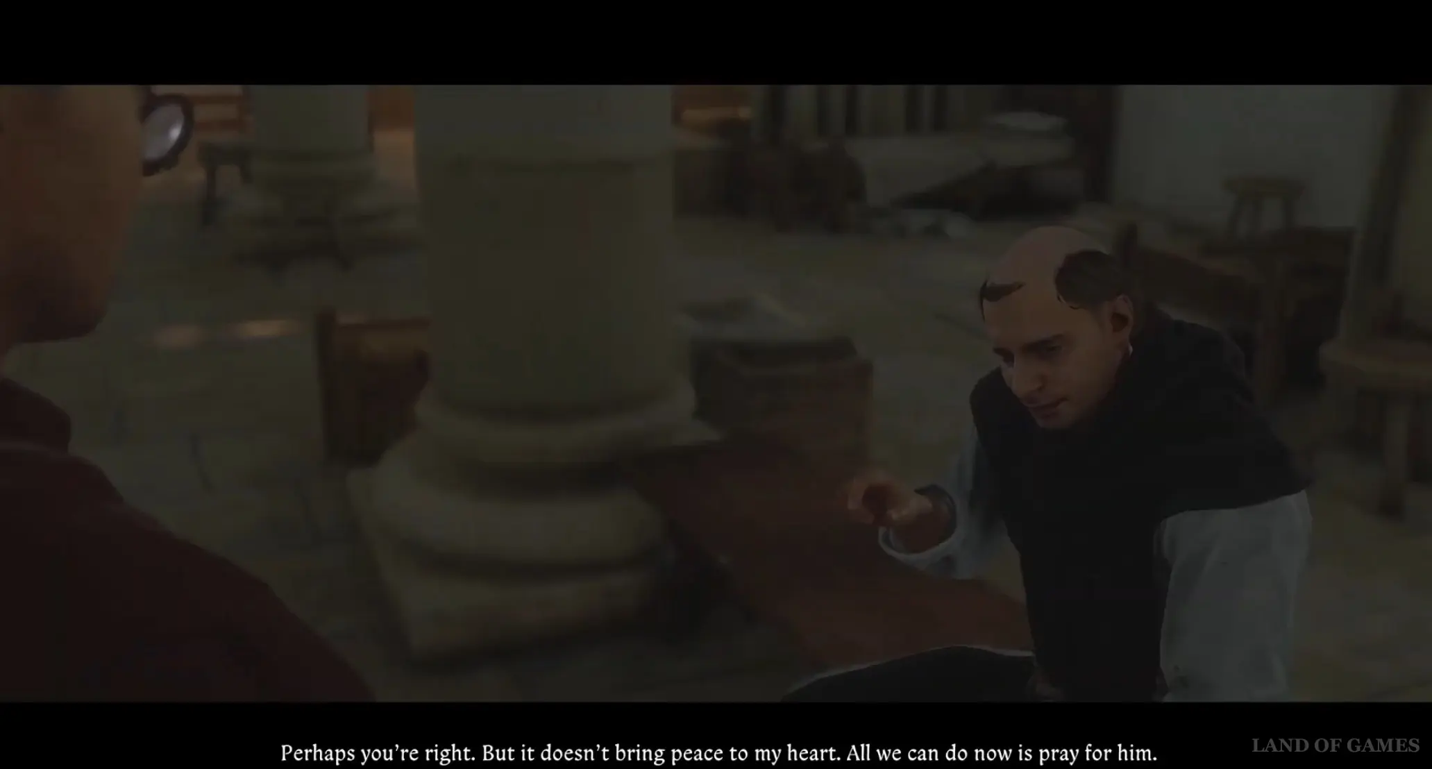 При любом раскладе вам нужно будет поговорить с Афанасием, которого вы опять же встретите на верхнем этаже монастыря. Поднявшись, начните диалог с монахом, который может пойти в немного разных направлениях в зависимости от ваших предыдущих решений: