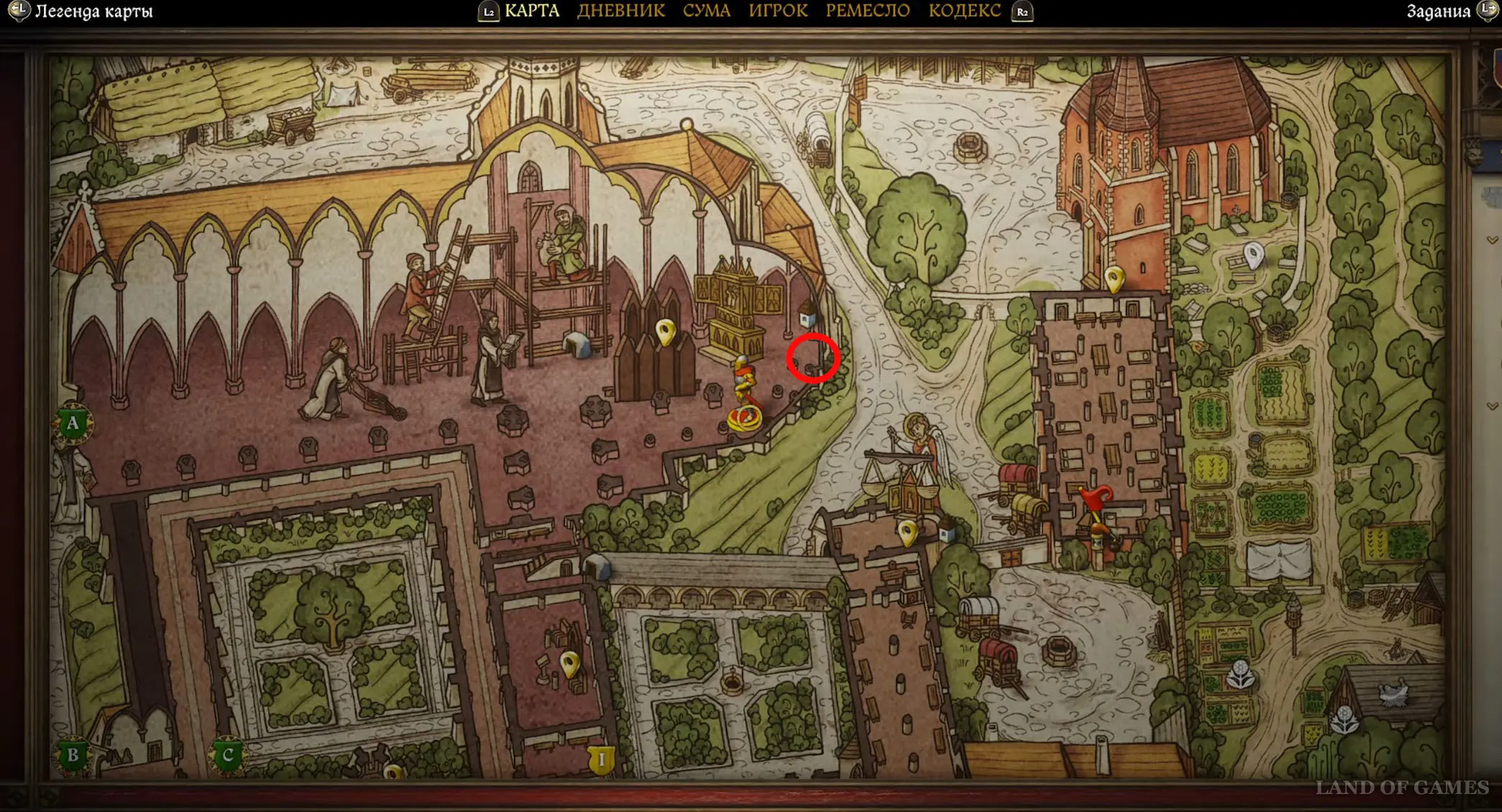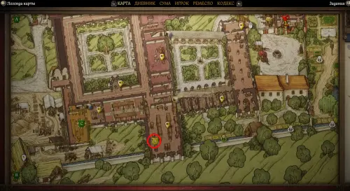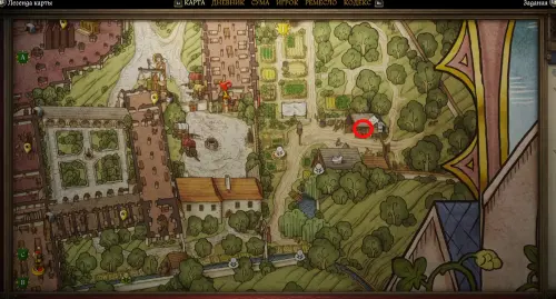 Откройте свой инвентарь, перейдите в раздел «Книги» и спуститесь на вкладку «Карты». Отыщите тут Набросок герба Болеслава Бавора и откройте его. Далее запомните данный символ, так как вам предстоит отыскать его в крипте.