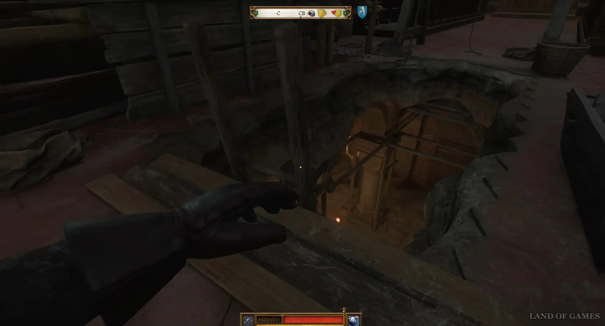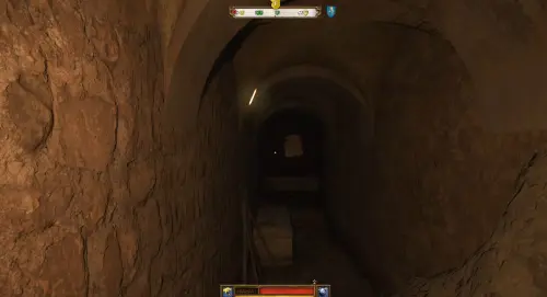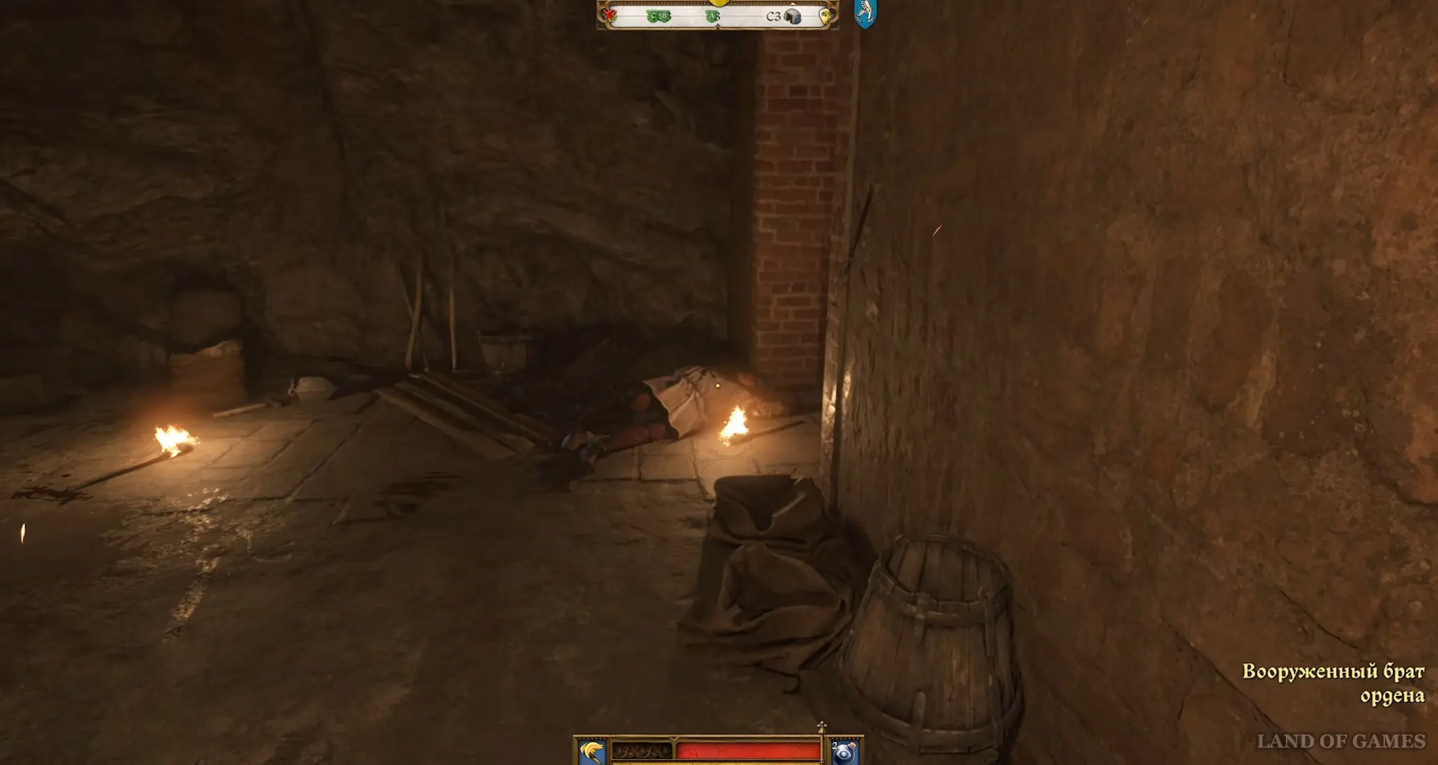 Выберитесь из крипты, взобравшись по кучке грязи и пройдя к проходу впереди тоннеля. Здесь вы обнаружите труп вооруженного брата ордена – советуем вам забрать с него доспехи, так как они пригодятся вам в будущем. Однако не стоит носить их на людях, так как стражники сразу же посчитают, что вы их украли.
