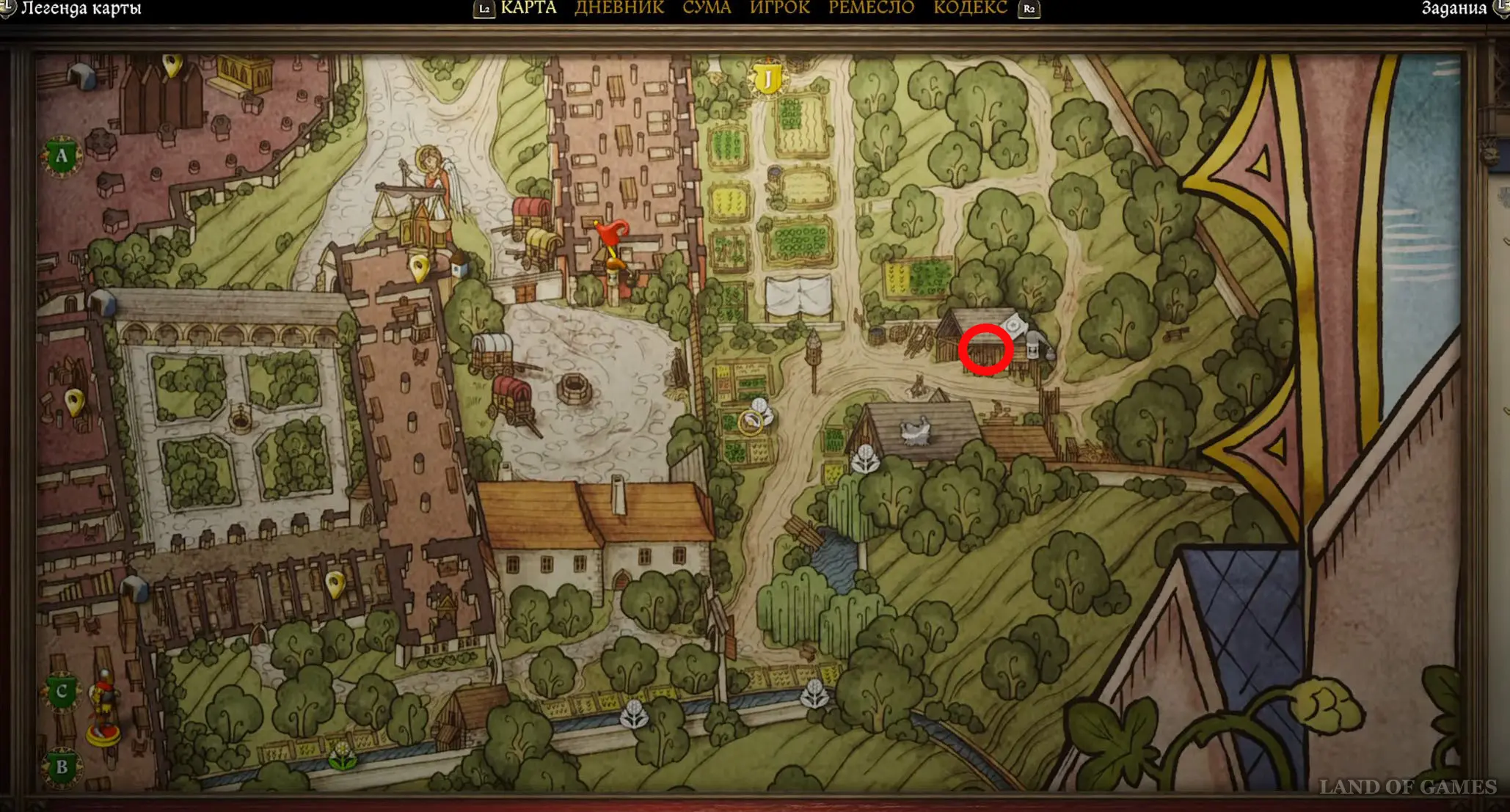 Сначала отправляйтесь в Лесосад, так как здесь вам нужно будет отыскать Ключ от кладбища лечебницы, который будет висеть на двери сарая с сушилкой, прямо неподалеку от дома травника. На скриншотах ниже показано нужное место.