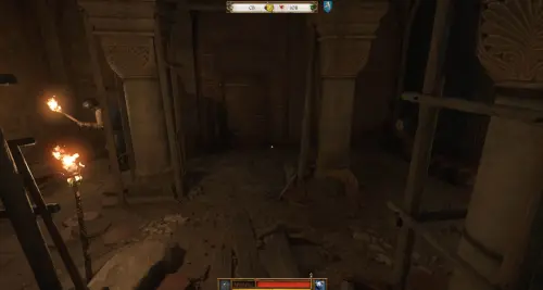 От фрески пройдите немного на запад к дыре на полу, и снова спуститесь вниз. Если рядом окажутся стражники, то кидайте камни, чтобы отвлечь их, а потом быстренько прошмыгните к лестнице. Внизу будет еще один охранник, но он обычно смотрит в другую сторону, поэтому вы сможете легко проскользнуть мимо него и войти в склеп. Обязательно закройте за собой дверь и возьмите в руки факел.