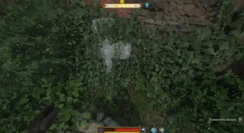 Далее двигайтесь на север и подойдите к каменной ограде, расположенной на выделенной желтой области на карте. Здесь вы обнаружите запертую дверь на сложный замок. Если вы ранее смогли раздобыть ключ, то сможете без проблем открыть ее. В ином случае придется взламывать дверцу.