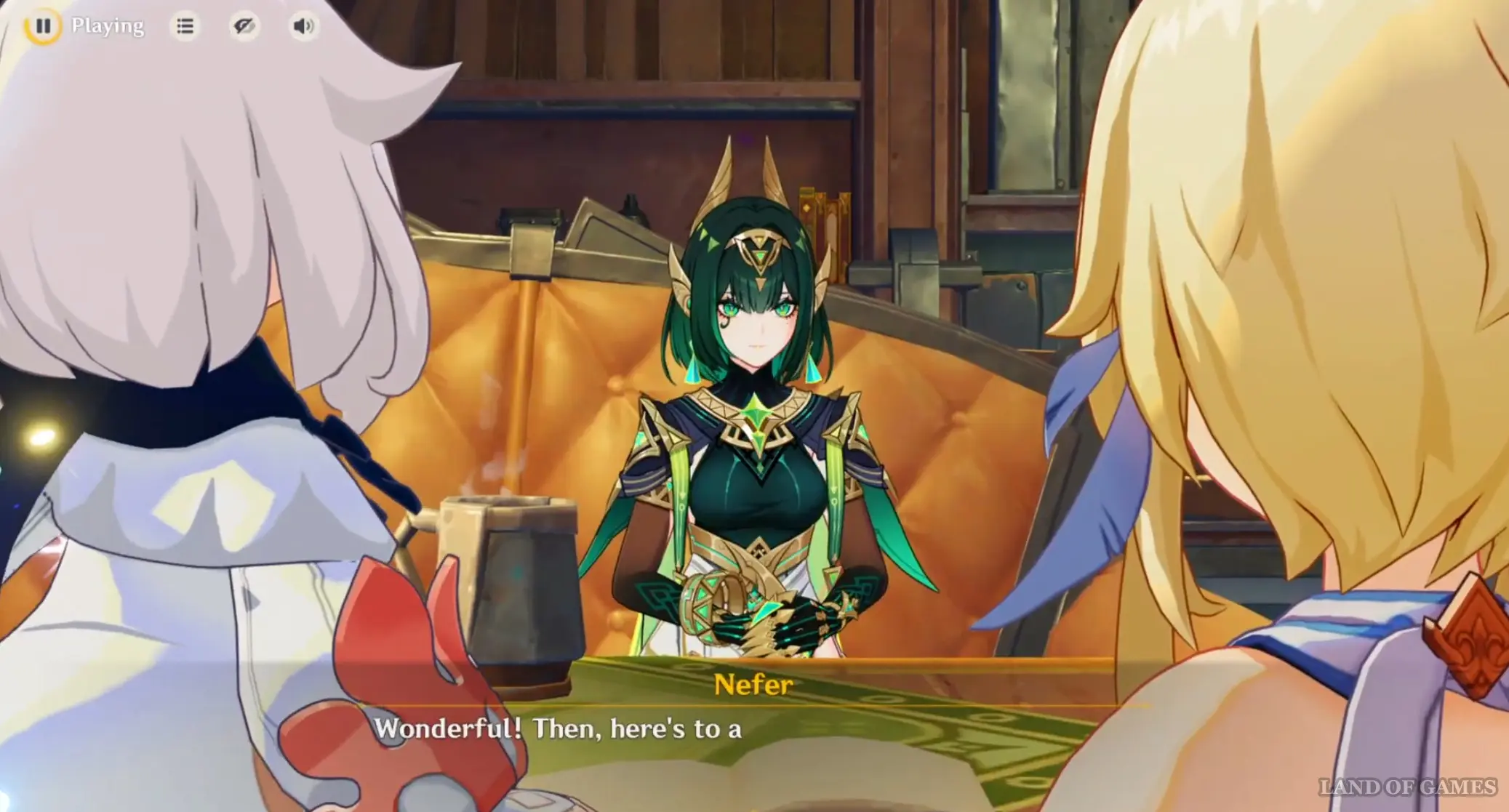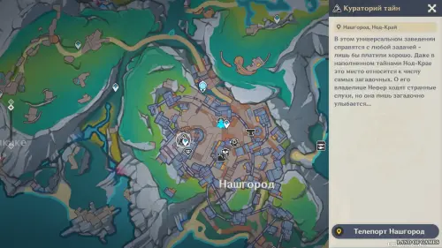 Отправляйтесь в Кураторий тайн, расположенный в Нашгороде (вход в него находится чуть позади и справа от местной сувенирной лавки). Внутри тут же начнется продолжительная кат-сцена. Вы узнаете от Нефер, что она искала особую книгу с историей, которую рассказывают в пустынях Сумеру. Для нее эта книжка является ниточкой, ведущей к отцу.
