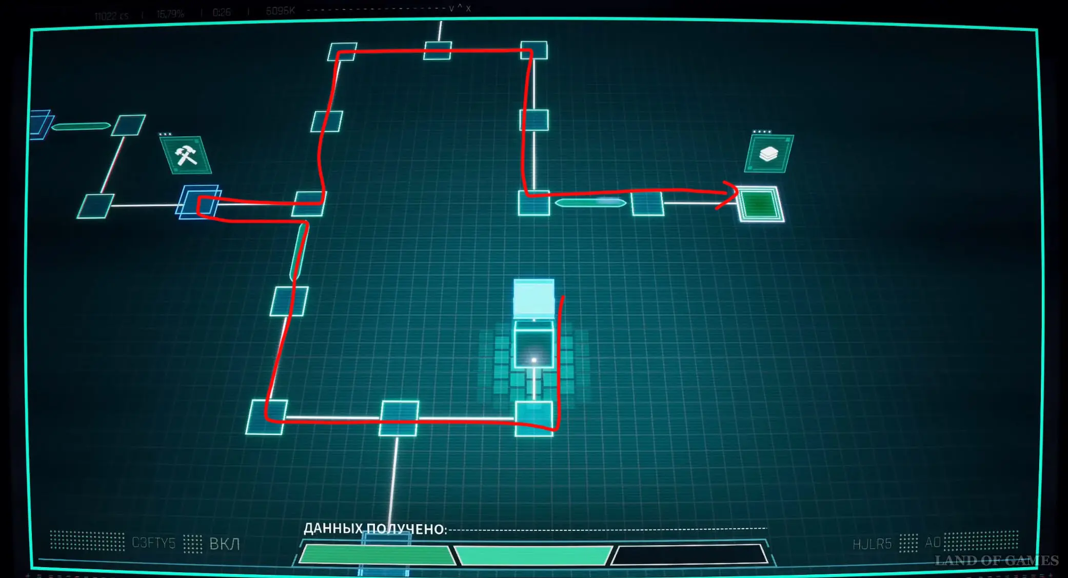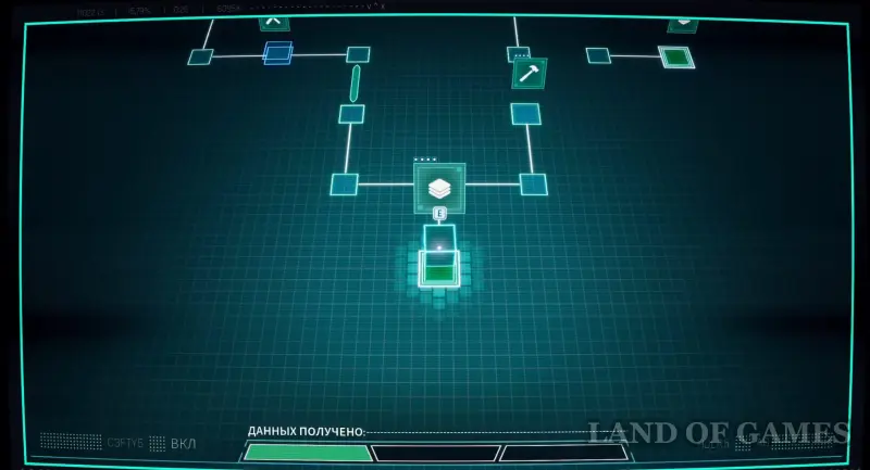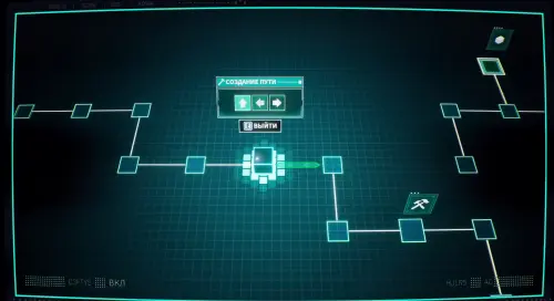 Разобравшись с бандитами, вы поднимите планшет и начнете взлом, в рамках которого необходимо передвигать кубик-аватар по небольшим квадратами, используя клавиши «WASD». Ваша задача будет заключаться в обходе разных защитных систем, останавливаясь на ячейках с подсказами и завершая определенные запросы на экране.