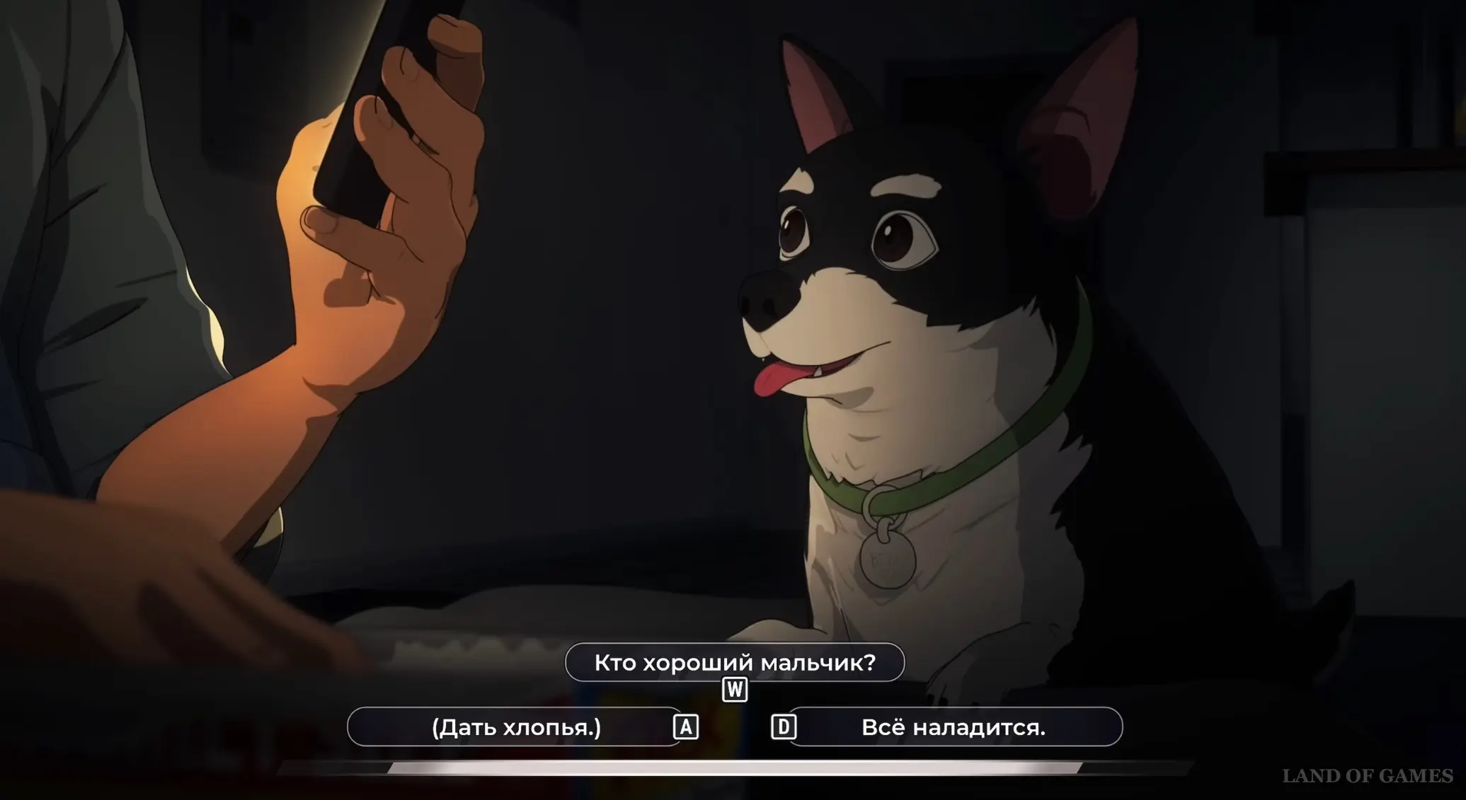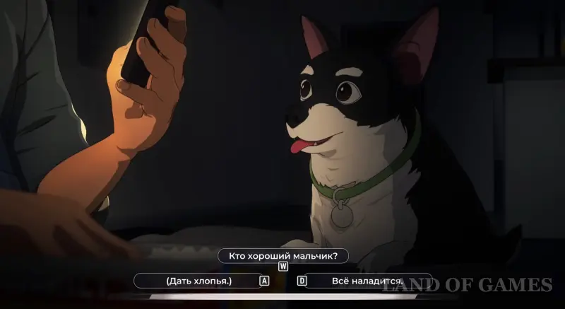 Пройдя обучение, вы возвратитесь домой. К вам подойдет собака. Что будете делать? (не влияет на сюжет).