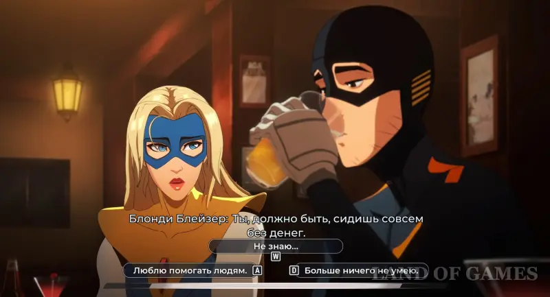 Далее вас начнут избивать, но появится Блонди Блейзер и спасет вас, а потом она примется осматривать вашу травмированную руку. Ответьте ей (не оказывает влияние на сюжет):