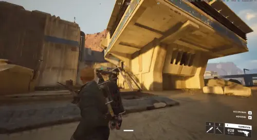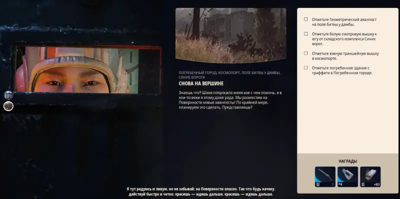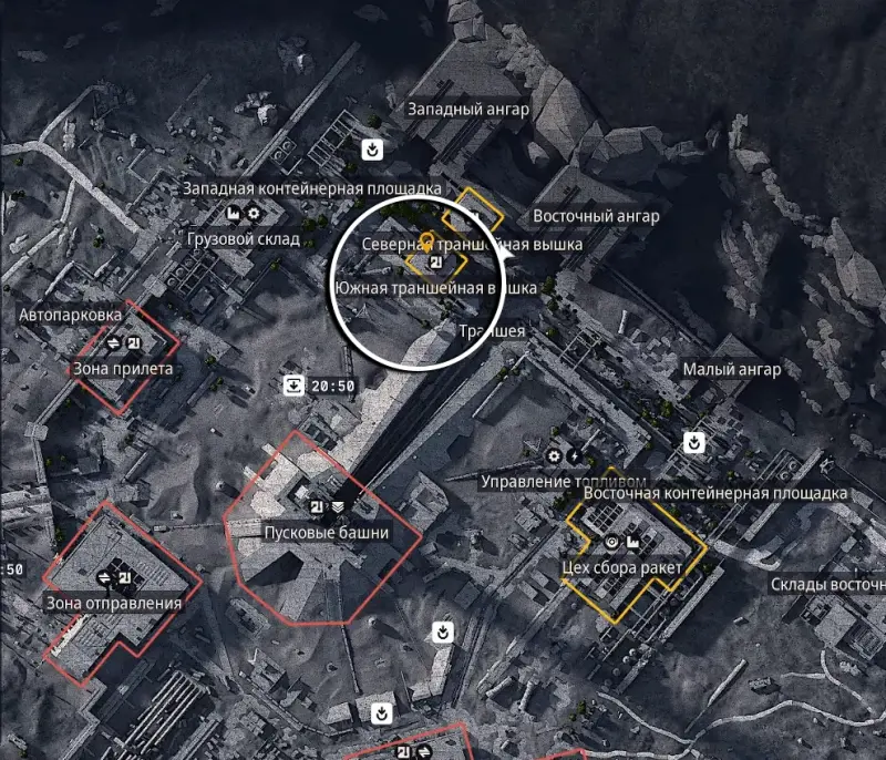 Теперь отправляйтесь в Космопорт. Нужная точка Южная траншейная вышка, при этом сама она находится в северной части карты. Вышка стоит на выступе над траншеями, добраться до нее можно как по лестницам, так и по обходному пути вдоль бетонных стен.