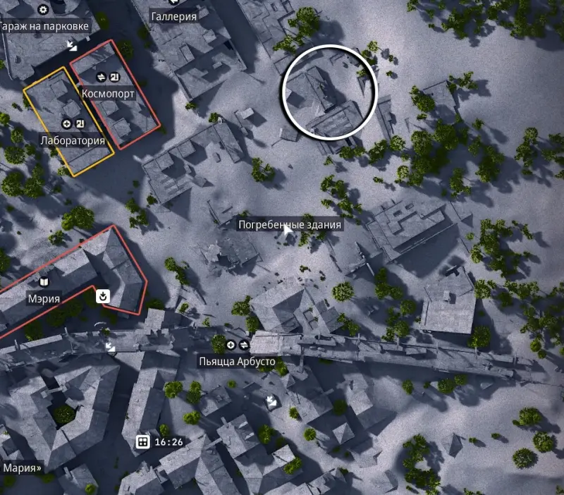 Ищите дом, выступающий из песка под углом. У его ворот появится возможность нанести отметку. Здание малозаметно, поэтому ориентируйтесь на метку карты или на сохранившееся граффити.