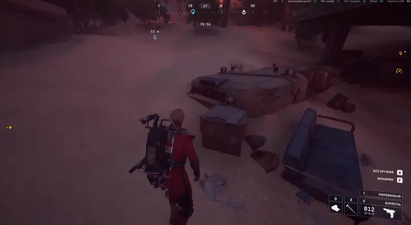 Тайник не внутри здания, а рядом, возле разбитого транспорта. Главный ориентир – синий диван или кресло, лежащее возле покореженного фургона. Рядом стоит ржавый контейнер: именно он отмечен маркером задания.