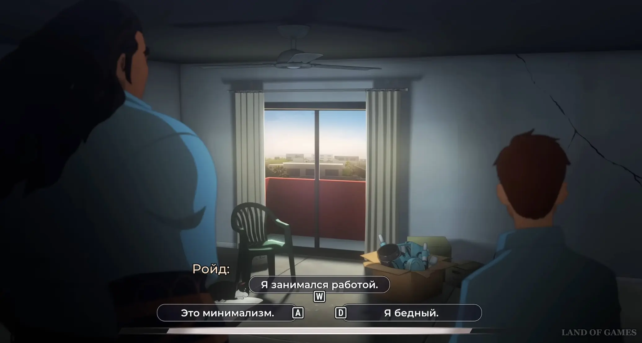 Просматриваем начальный ролик и вступаем в диалог с Ройдом. Как ответим на его слова (не влияют на сюжет):