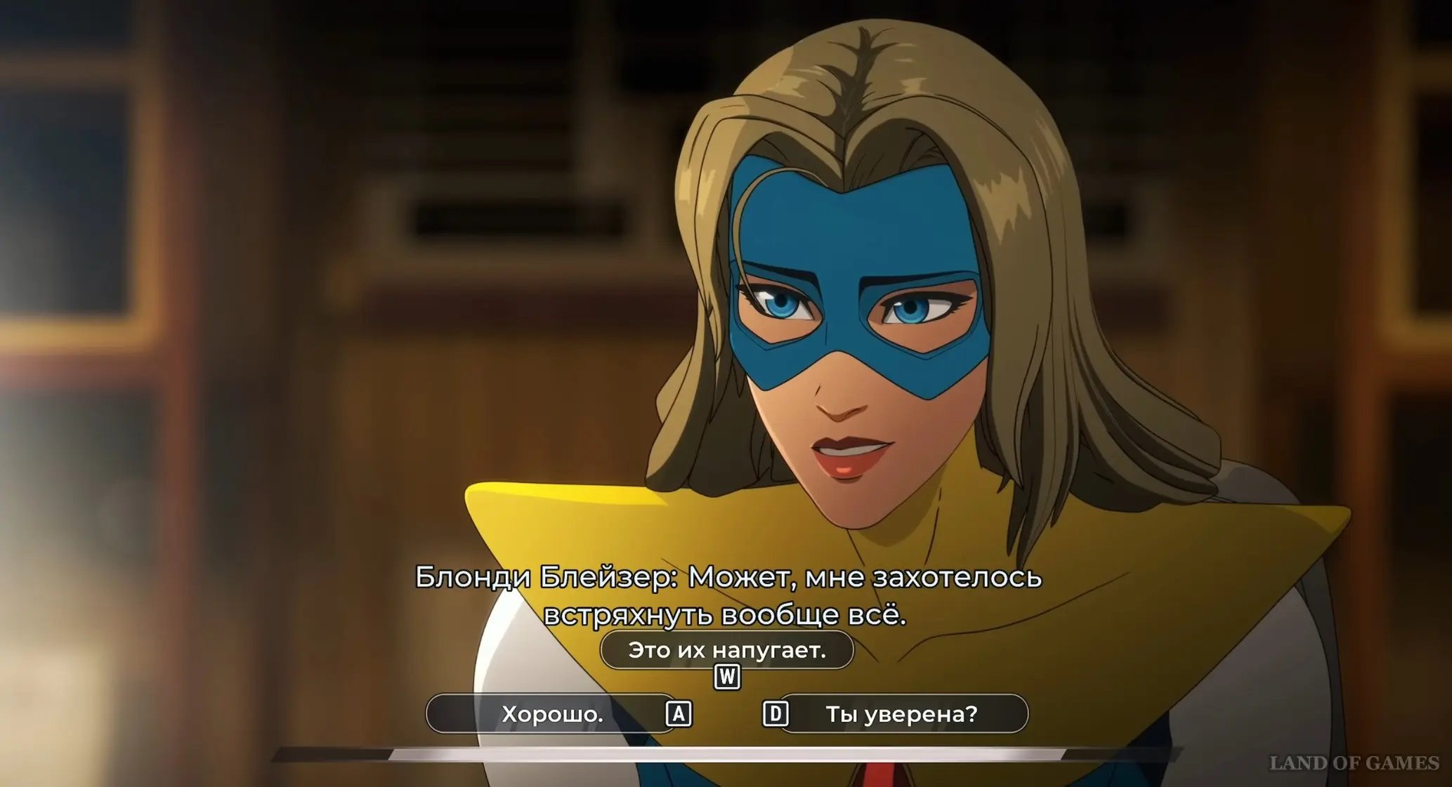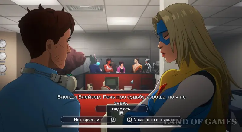 В итоге Невидива сможет поймать преступника и притащит его в офис. Мы поговорим с Блонди Блейзер, которая спросит у нас, что мы думаем об этом? Отвечаем (она запомнит наш ответ):