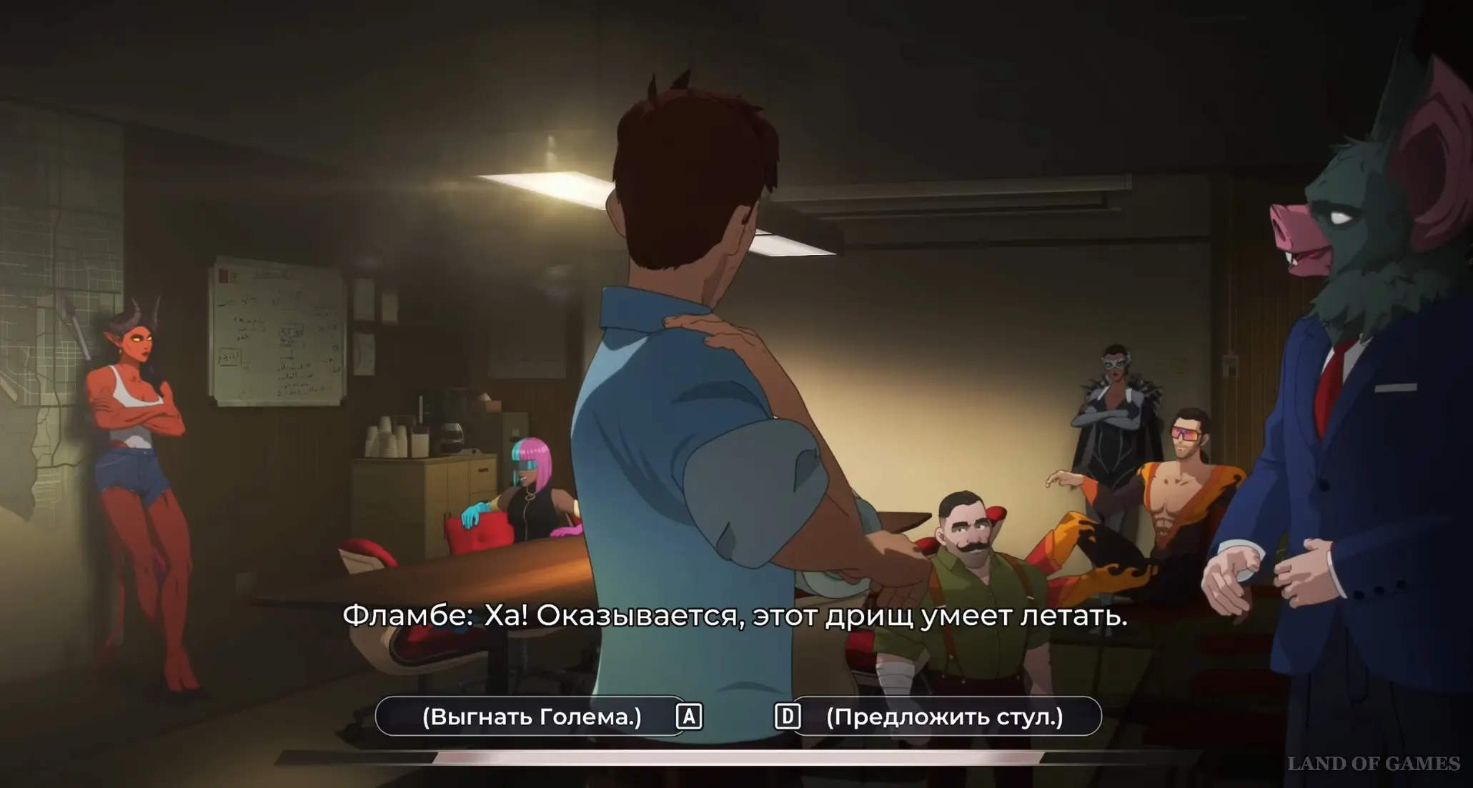 Игра автоматически выберет Малеволу. Затем посмотрите небольшой ролик, где демоница будет противостоять Невидиве. Далее мы решим собрать всех членов своей команды в конференц-зале. Здесь нам предстоит сделать несколько важных выборов.