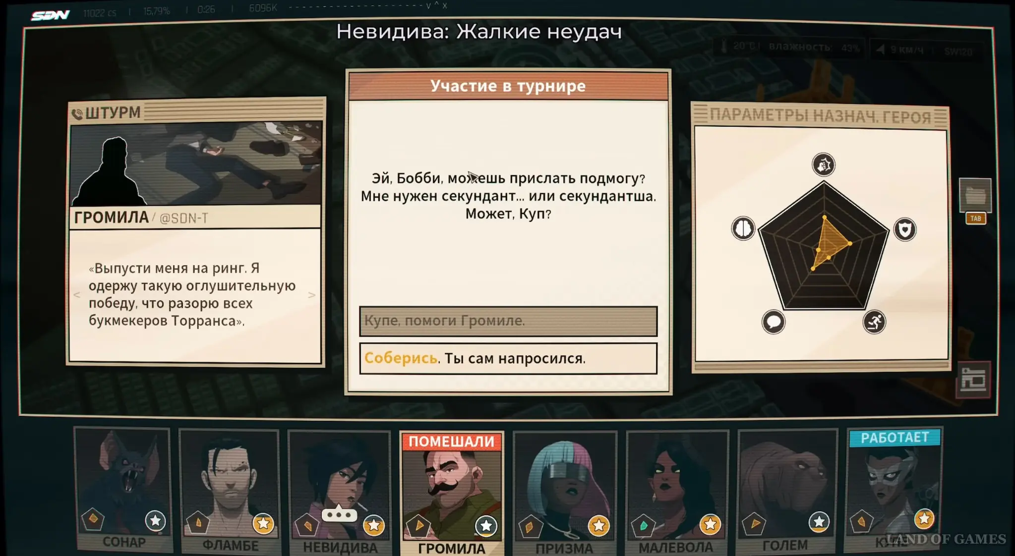 Если выберите «Участие в турнире», то отправьте на него Громилу, который в случае успеха получит 200% очков опыта. Однако ему понадобится секундант: