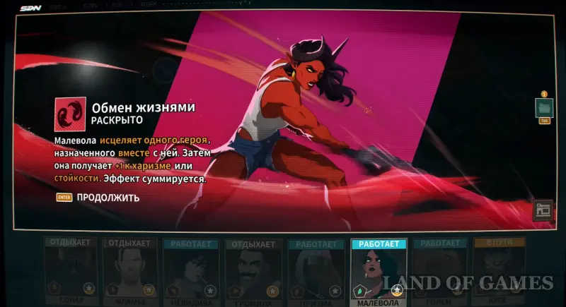 Примечание: Отметим, что у Малеволы имеется уникальный навык «Обмен жизнями», который можно открыть, если назначить ее с раненым героем. Она тут же исцелит этого персонажа и получит прибавку к характеристикам.