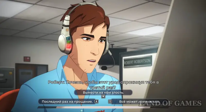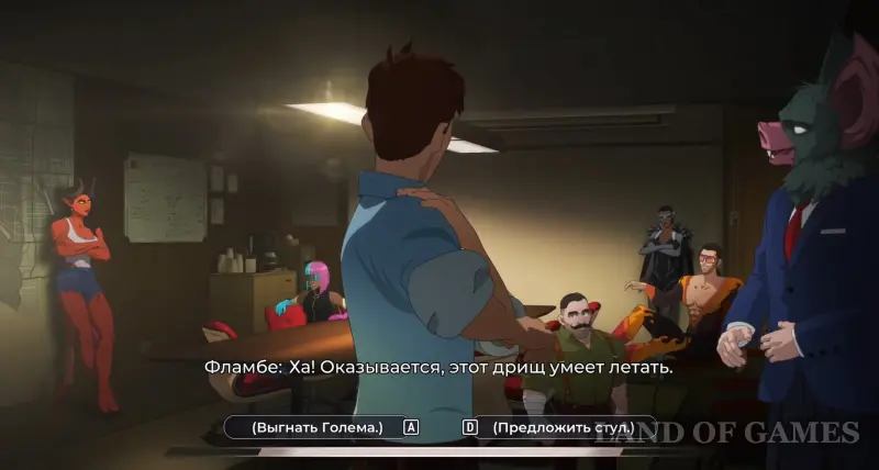 Мы прибудем в офис и выйдем из лифта, а в коридоре нас случайно заденет Голем. Как отреагируем на это? (он запомнит наш ответ).
