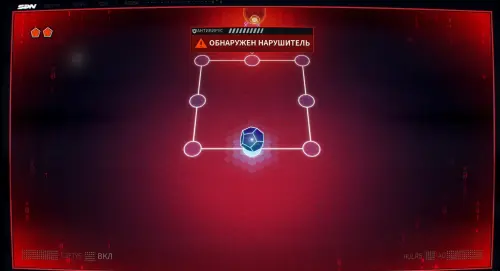 Далее начинаем второй взлом (тоже получим очки хорошего наставника). Здесь тоже придется убегать от антивируса. Для этого после его появления заманите его во второй большой квадрат, который находится в самом начале уровня (слева), чтобы он не успел добраться до вас, пока вы взламываете систему справа.