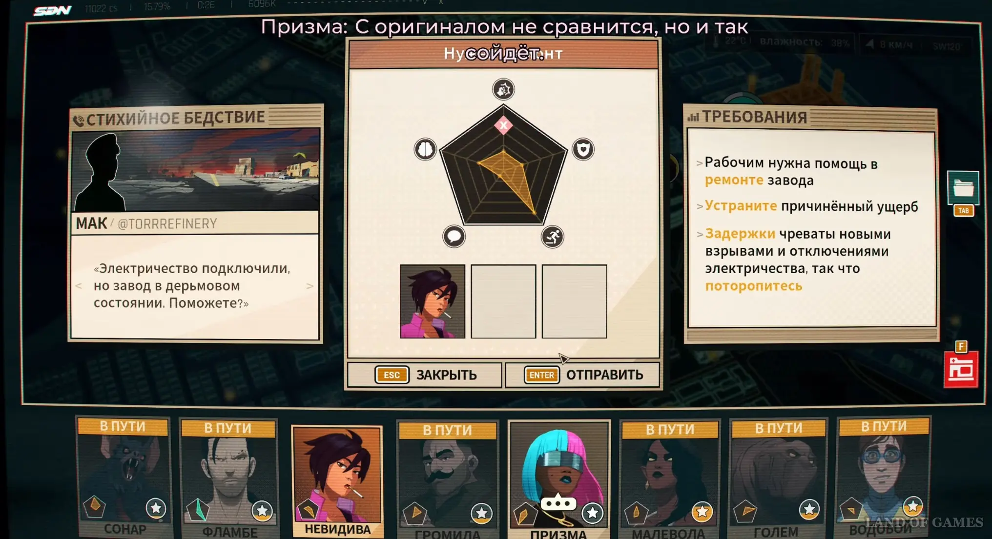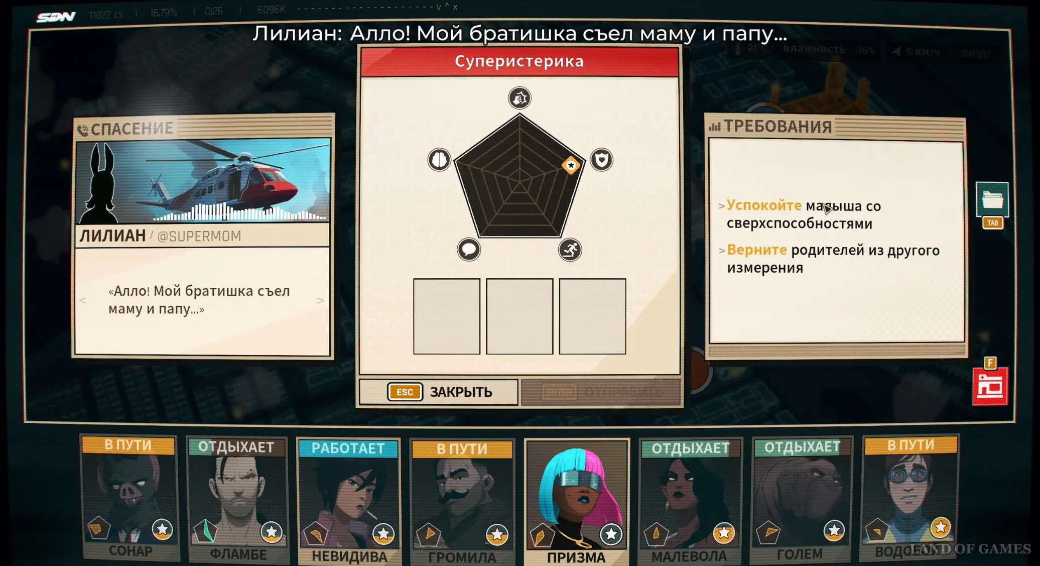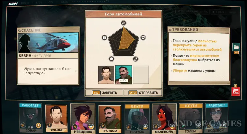 Просмотрев кат-сцену, начинаем вторую смену диспетчера, в которой будет гораздо больше обязательных взломов. Как обычно, мы укажем их решение и подскажем, каких героев лучше всего отправлять на те или иные вызовы.