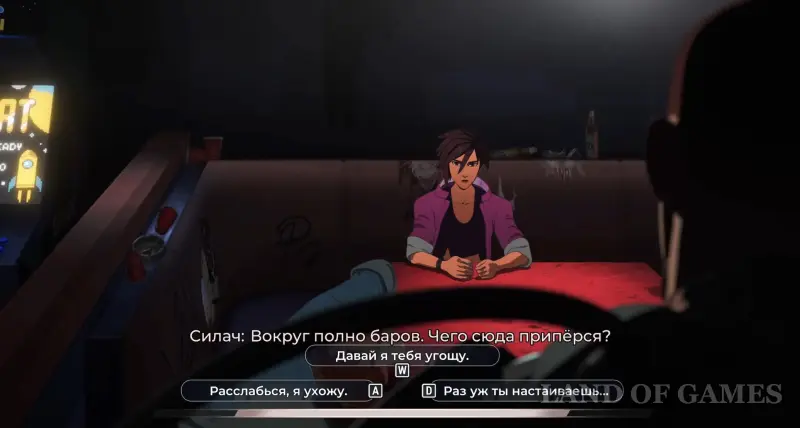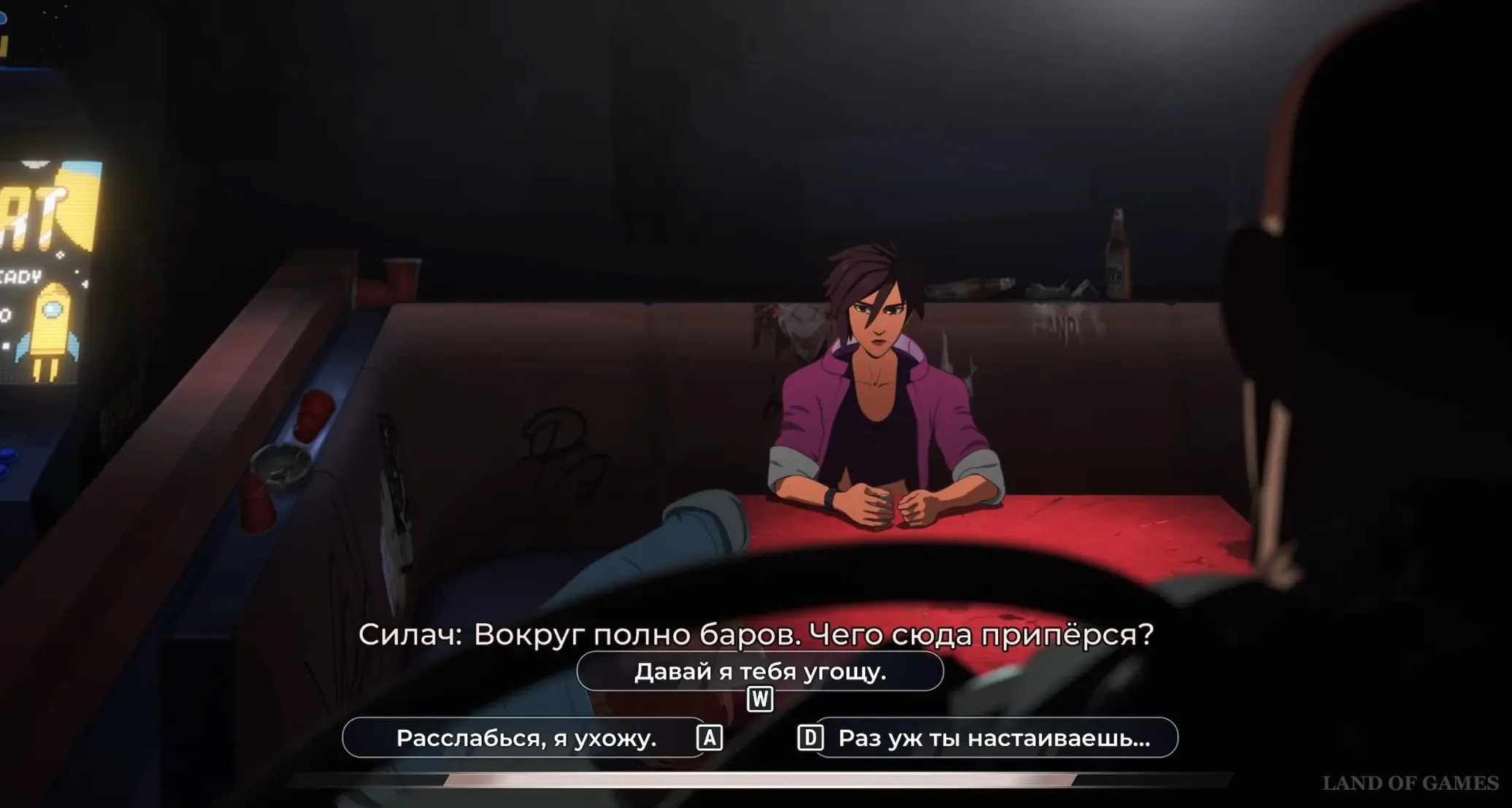 Затем к нам присоединятся за барной стойкой Малевола, Призма и Громила. Отвечаем им (не влияет на сюжет):
