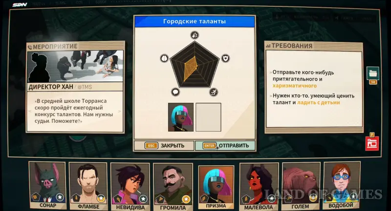 Рекомендуем направить на это задание Фламбе и Призму. Если у вашей команды будет более 7 единиц харизмы, то вы получите бонус к очкам опыта.