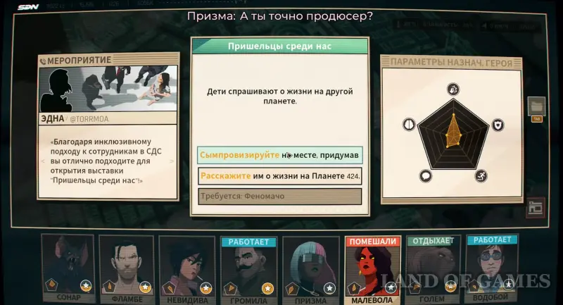 Потом проходим на свое рабочее место и принимаемся за первую смену в этом эпизоде. Как обычно, нам необходимо будет правильно выбирать персонажей для отправки их на различные вызовы. Далее мы укажем оптимальные решения.