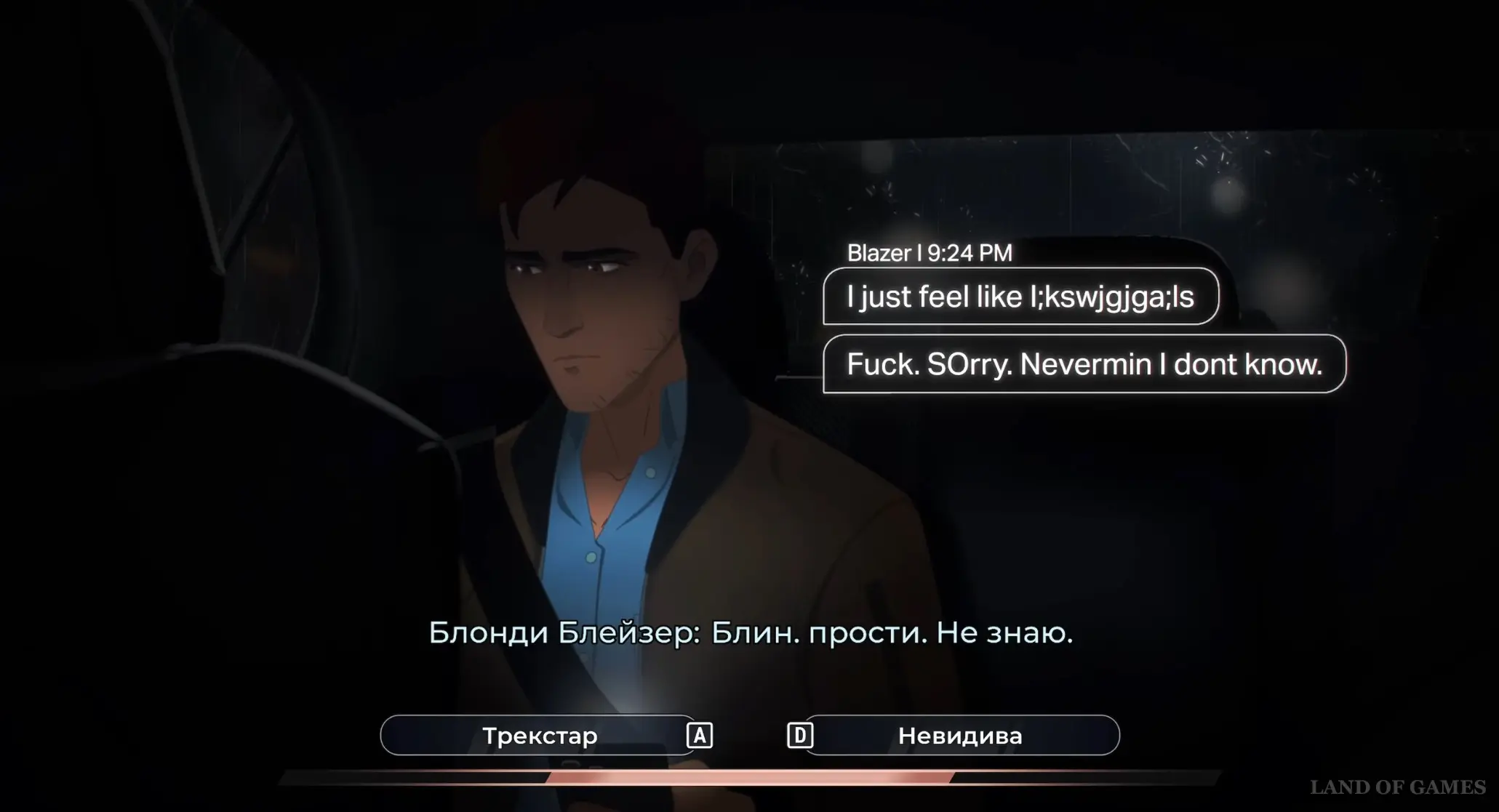 Завершив встречу с Невидивой, смотрим следующий ролик и оказываемся в такси, где нам нужно будет сделать еще один важный выбор (она запомнит это):