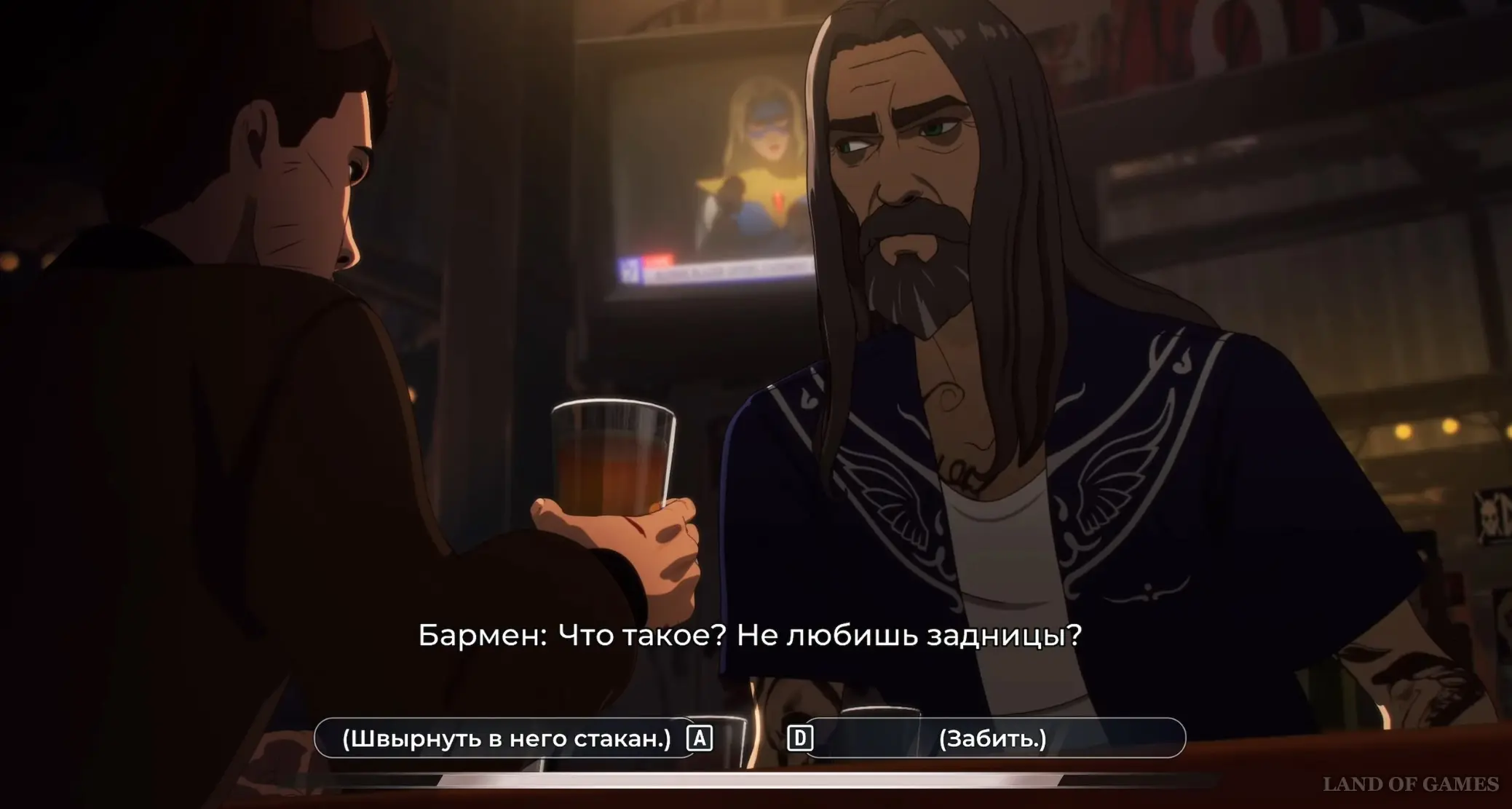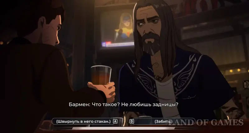 Бармен начнет грубить. Как поступим (не влияет на сюжет, а лишь изменит действие Роберта в грядущей сцене):