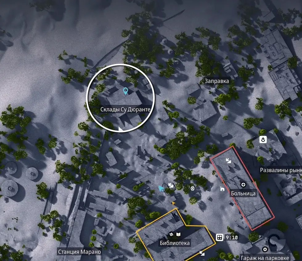 Открыв квест, отправляйтесь в Погребенный город, в его северо-западную часть. Здесь расположена зона Склады Су Дюранте – крупный промышленный комплекс, обозначенный подписью на карте.