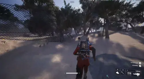 От тайника в песке появляются следы ног, ведущие к деревьям за зданием, немного в сторону леса у разбитого забора. Следы заметны даже издалека, поэтому просто идите по направлению цепочки отпечатков.