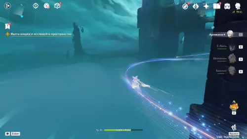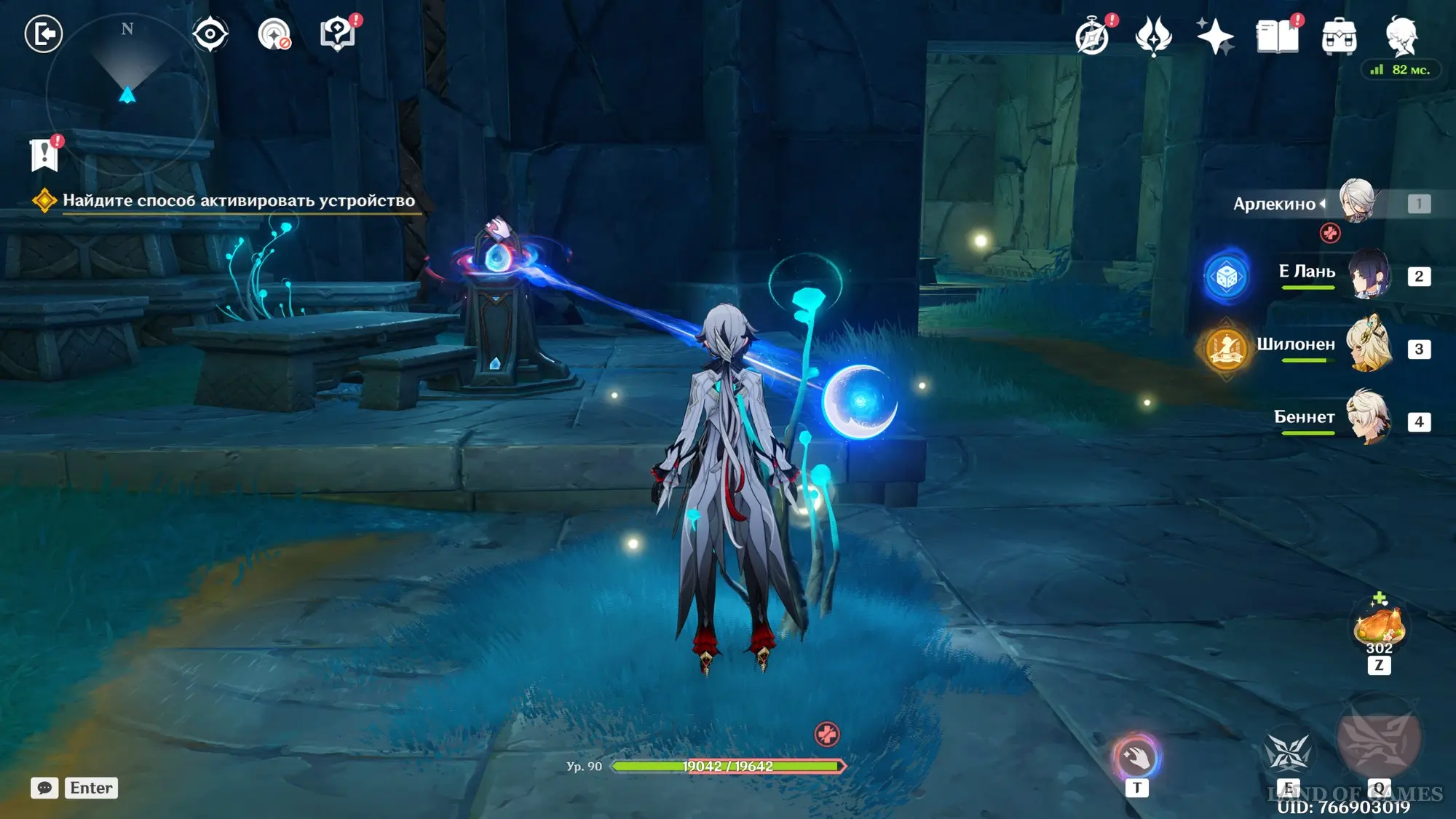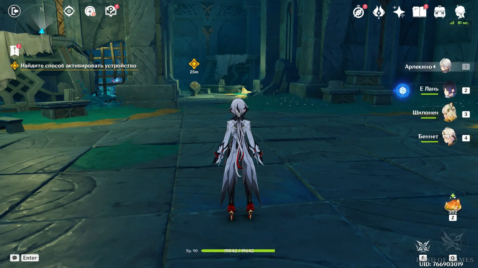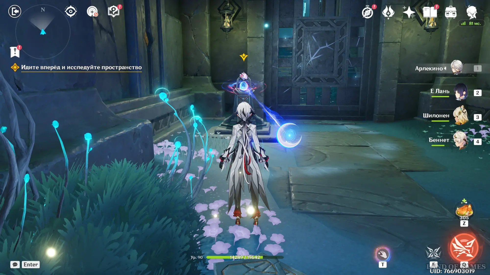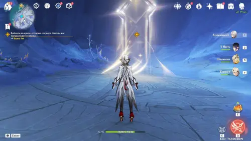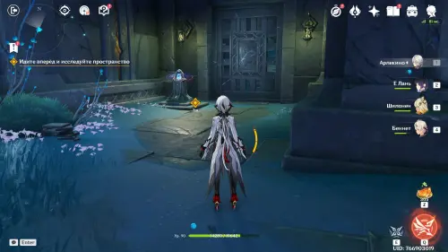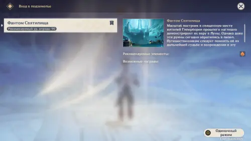 Просмотрев кат-сцену, войдите во врата, которые открыла Николь, чтобы запустить подземелье «Фантом Святилища». Игра порекомендует вам взять Пиро персонажей, однако на деле будет достаточно прокаченных персонажей любых стихий (кроме Гидро, так как в определенный момент придется драться с Гидро слаймами). Попав в новую область, бегите вперед и поговорите с местными фантомами.