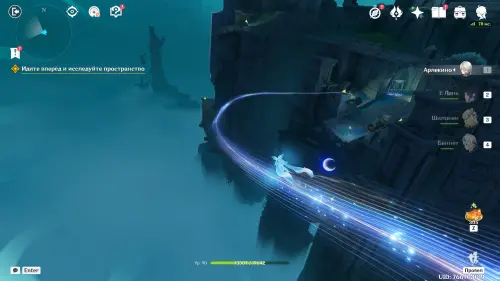 Разблокировав проход, пройдите вперед, а потом спрыгните в пролом на полу и продолжите исследование руин. В коридоре снова заберитесь на лунную тропу и летите по ней вверх, избавляясь по дороге от различных препятствий, взаимодействуя с ядрами. В конце вы приземлитесь на обширной площадке.