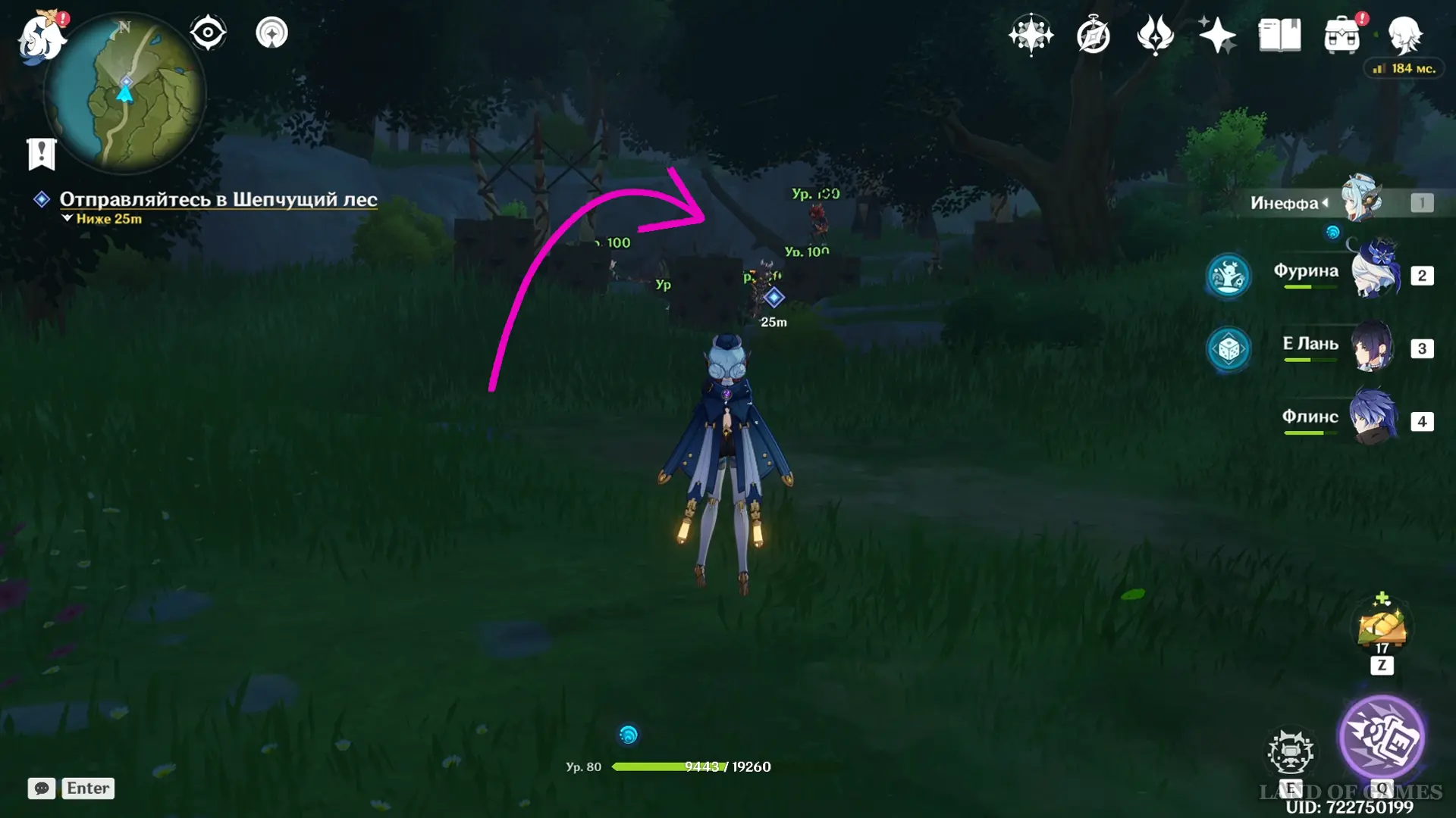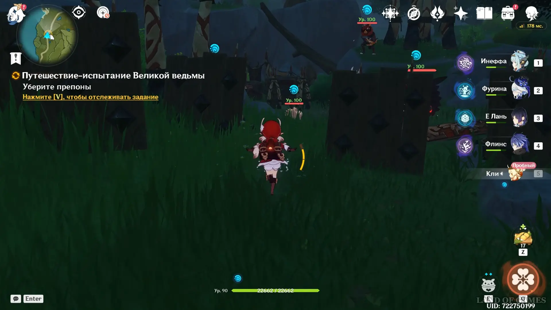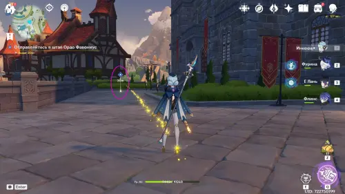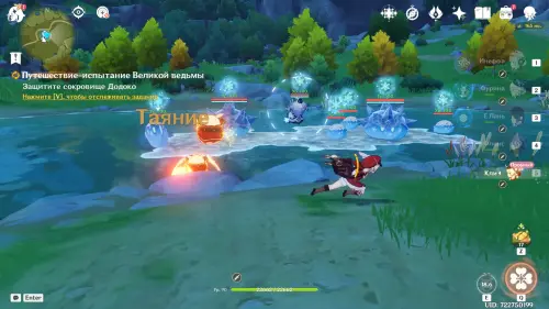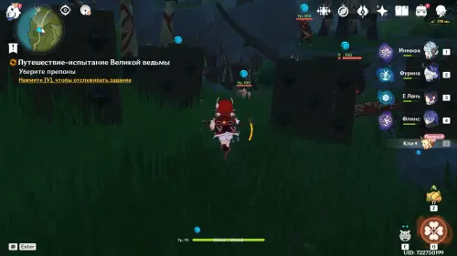 Первое препятствие, с которым должна справиться Кли – группа забаррикадировавших лесную тропу хиличурлов. После диалога нужно победить врагов, в чем нам поможет сама Рыцарь Искорка.