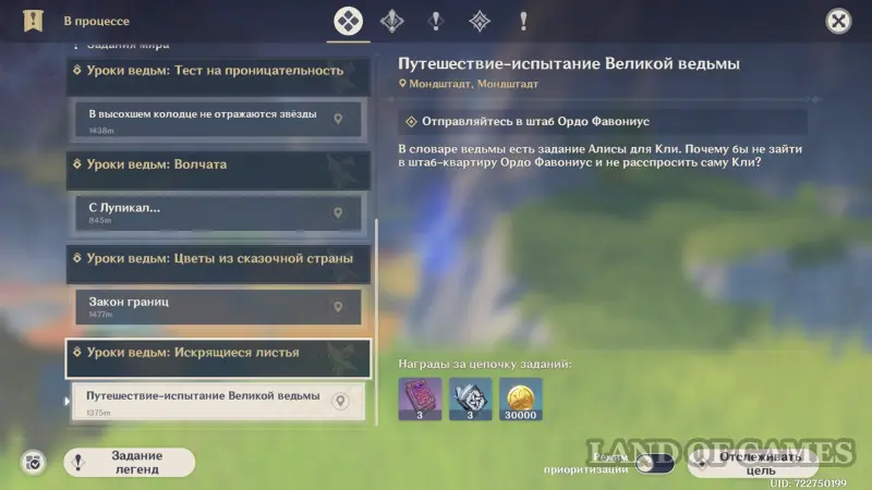 Чтобы запустить квест и открыть усиления для Кли, сперва нужно добыть Словарь маленькой ведьмы. Этот инструмент выдается за прохождение мини-миссии «Неожиданное поручение» – мы разобрали ее в основном гайде по Урокам ведьм.