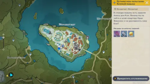 Начав выполнение квеста, переместитесь к Ордо Фавониус в Мондштадте и подойдите ко входу. Там вы встретите Кли, озадаченную новым поручением от мамы. Алиса рассказала ей про серию заданий, которые должны помочь Додоко, а все подробности – как выясняется – записаны в Словаре маленькой ведьмы. Из волшебной книги герои узнают детали испытаний, призванных помочь Кли стать сильнее.