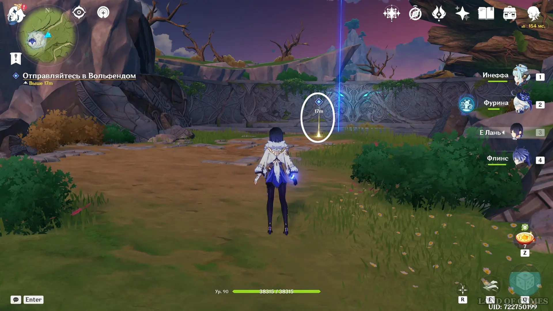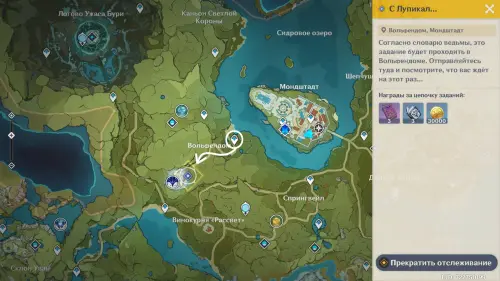 Выберите более удобный для вас телепорт в окрестностях Вольфендома (к юго-западу от крепости Мондштадта), а после добегите до квестового маркера перед ареной Волчьего лорда.