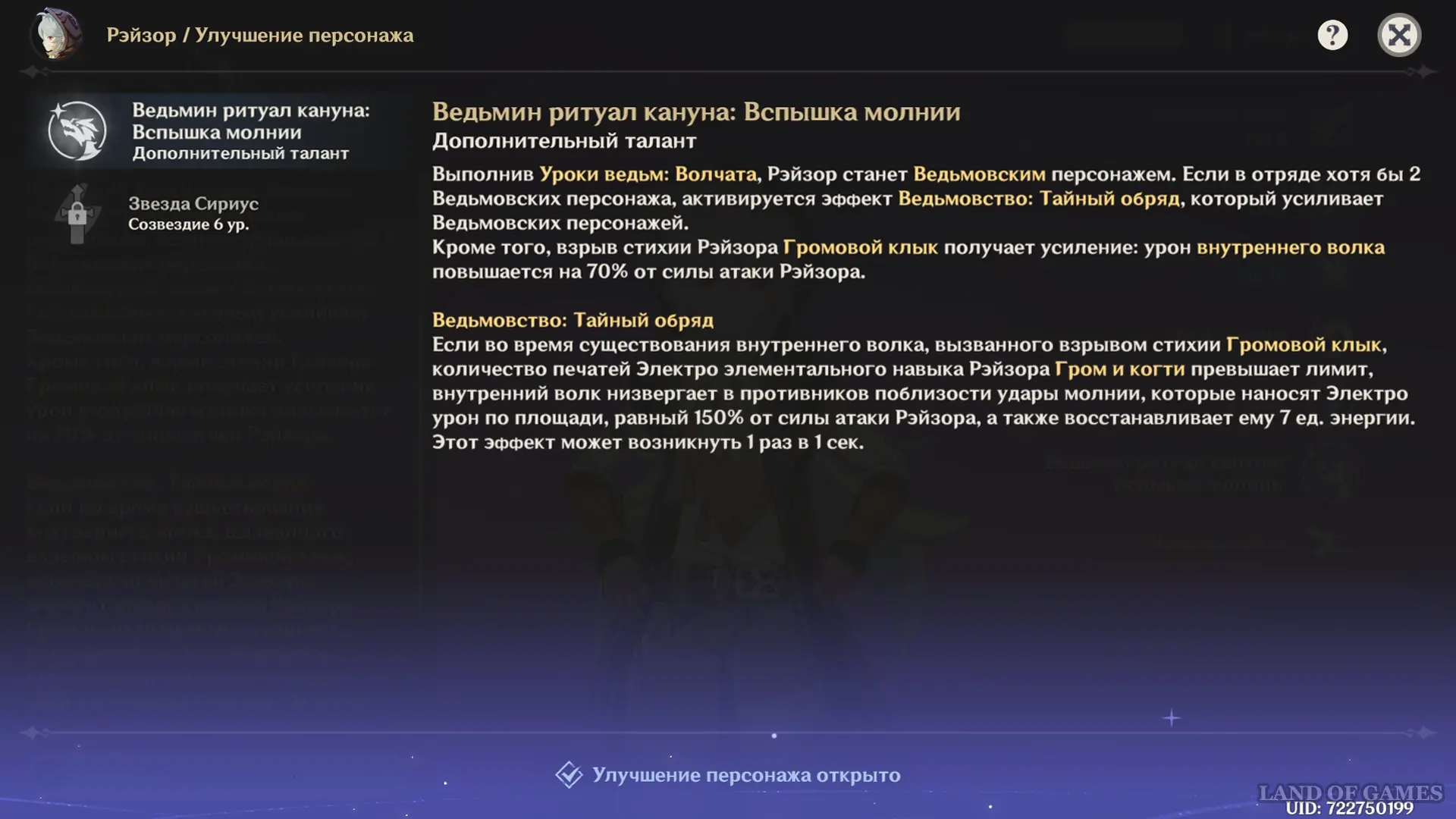 Уникальное умение «Вспышка молнии» будет работать только в отрядах с активным резонансом Тайного Обряда (двумя юнитами Шабаша в команде). Подробнее о получаемых Рэйзором усилениях вы можете прочитать в описании предпоследней пассивки в Талантах, а также ознакомившись с полным обзором в нашем отдельном гайде.
