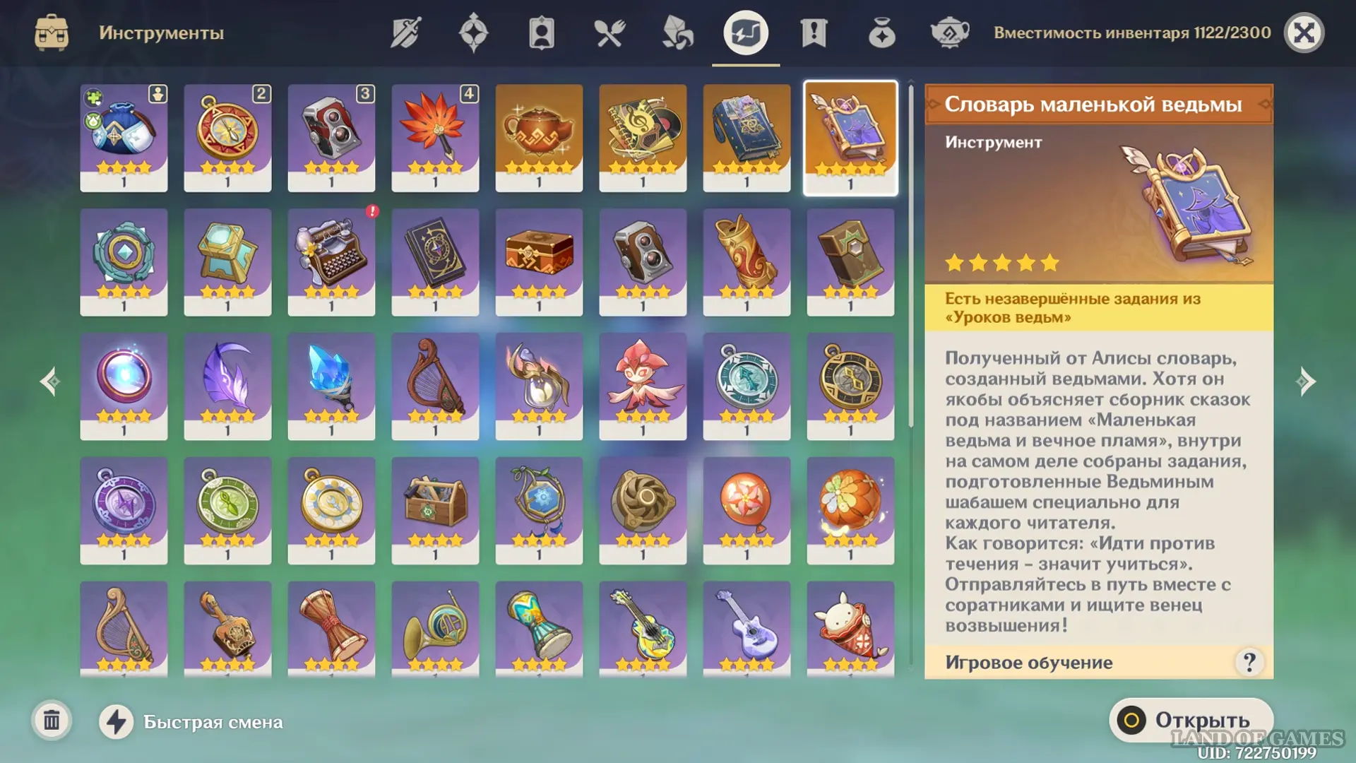 После получения словаря откройте его через Инвентарь, найдите иконку с Сахарозой и запустите ее урок ведьм.