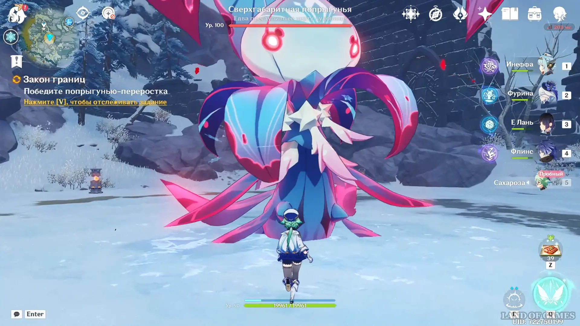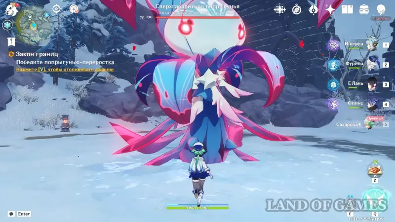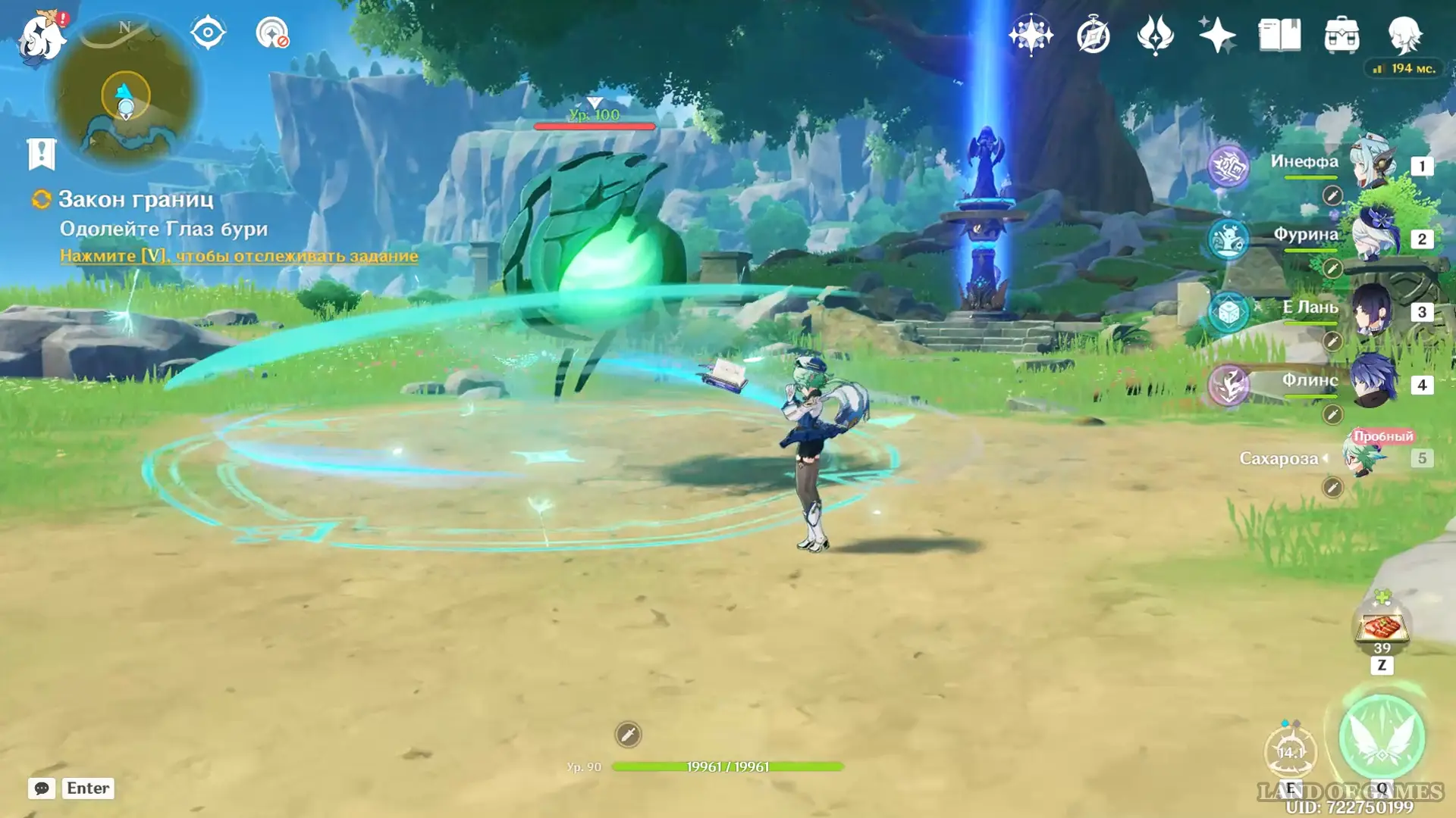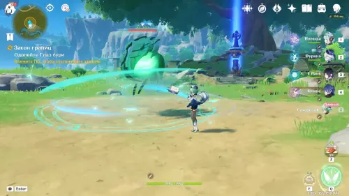 Далее переместитесь к статуе Анемо Архонта в долине Ветров и сразитесь с Глазом бури (в битве Сахароза станет 5-м компаньоном) – из него мы получим один из ключевых фрагментов зелья роста.