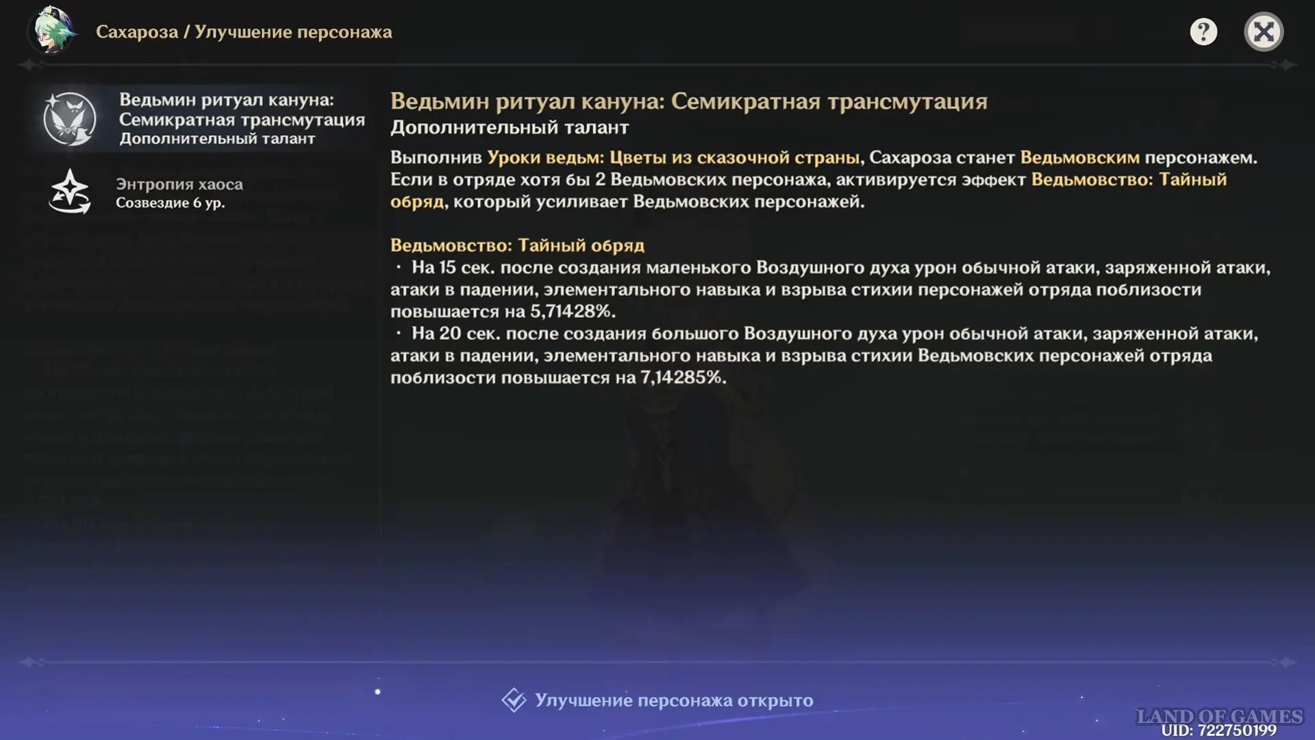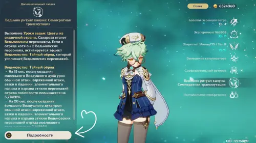 Эффект «Семикратная трансмутация» работает у Сахарозы исключительно в составе группы, где активирован резонанс Тайного Обряда (двое и более персонажей Шабаша). Полный перечень усилений и принцип их срабатывания вы найдете в деталях ее предпоследнего пассивного навыка, а все нюансы новых взаимодействий разобраны в нашем полном гайде.
